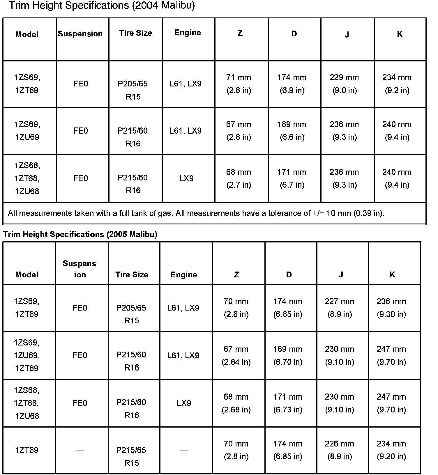 All dimensions are measured vertical to the ground. Trim height should be within +/- 10 mm (+/-0.39) to be considered correct.