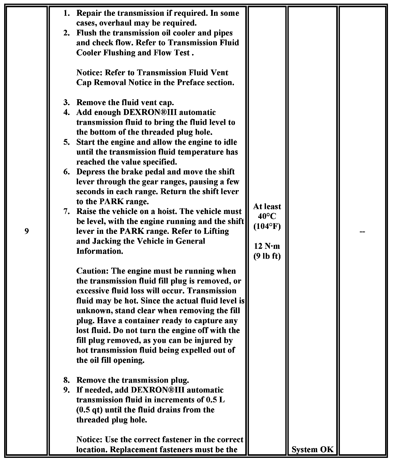 Transmission Fluid Level and Condition Check