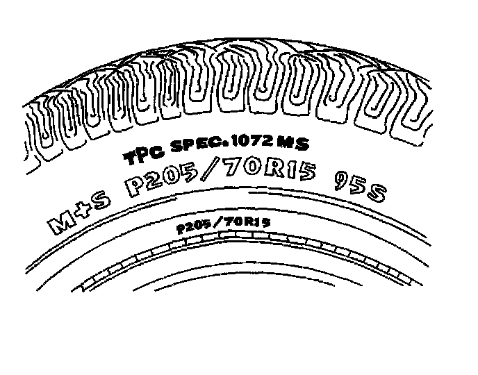 This vehicle is equipped with steel belted all-season radial tires as standard equipment. These tires qualify as snow tires, with a higher than average rating for snow traction than the non-all season radial tires previously used. Other performance areas, such as wet traction, rolling resistance, tread life, and air retention, are also improved. This is done by improvements in both tread design and tread compounds. These tires are identified by an M + S molded in the tire side wall after the tire size. The suffix MS is also molded in the tire side wall after the TPC specification number.