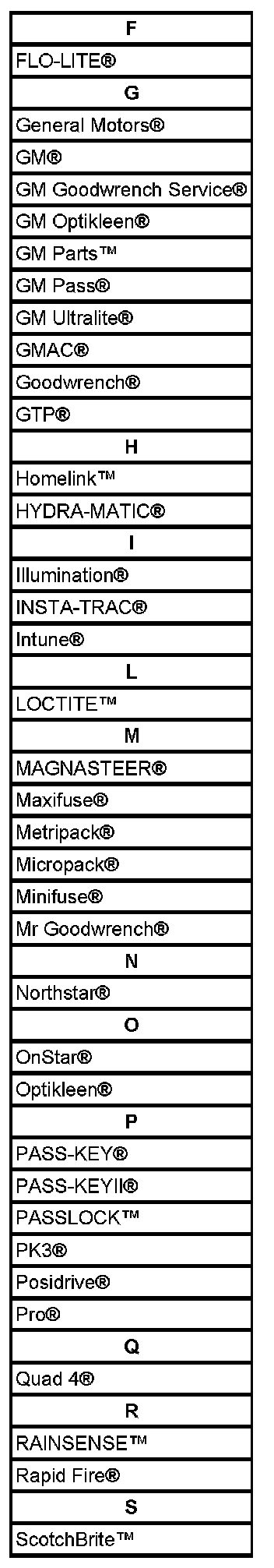 Listed are Registered Trademarks ((R)) or Non-Registered Trademarks ((TM)) which may appear in this service data.