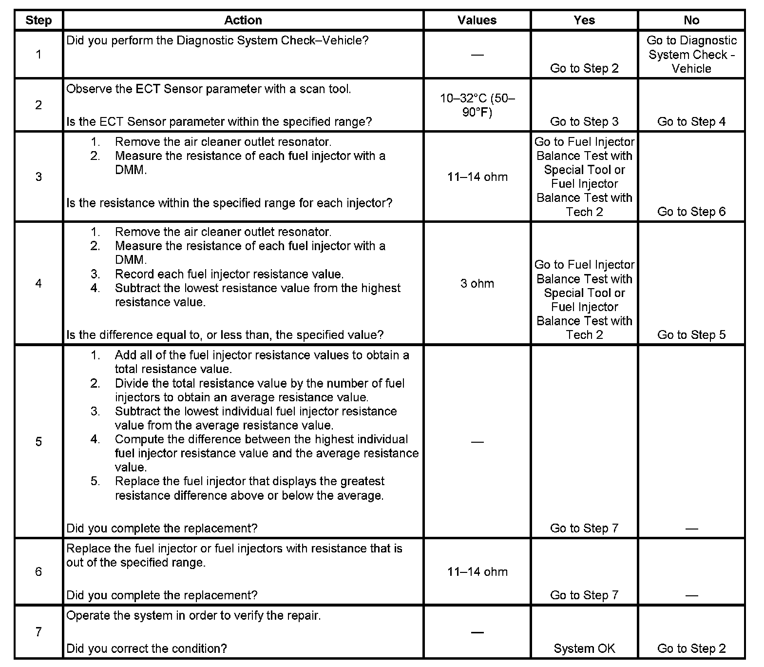 - Perform the fuel injector coil test within the conditions of the customer's concern. A fuel injector condition may only be apparent at a certain temperature, or under certain conditions.