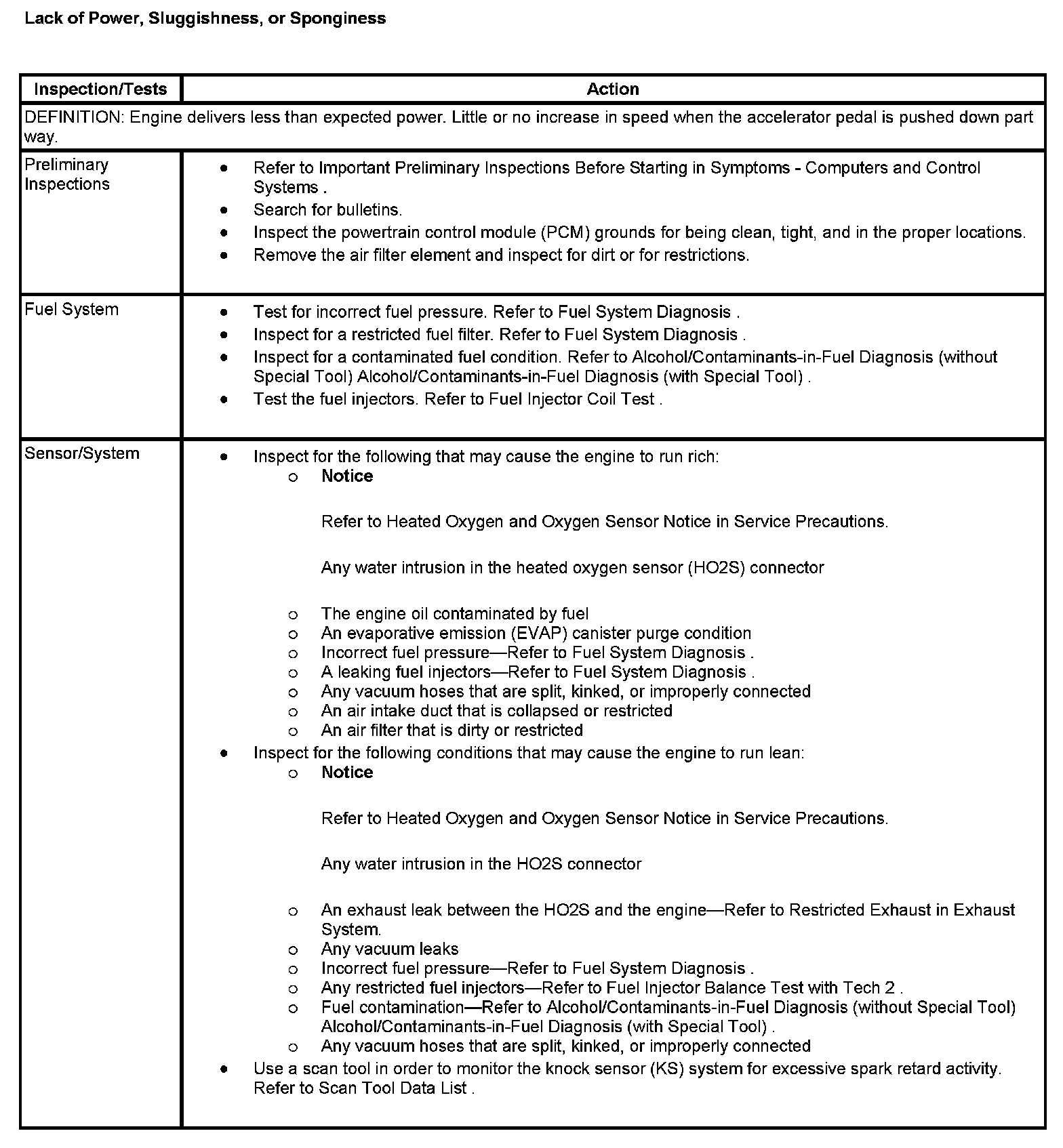 Lack of Power, Sluggishness, or Sponginess