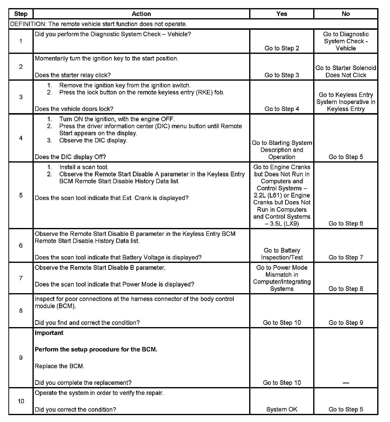 The remote vehicle start (RVS) will not operate under the following conditions: