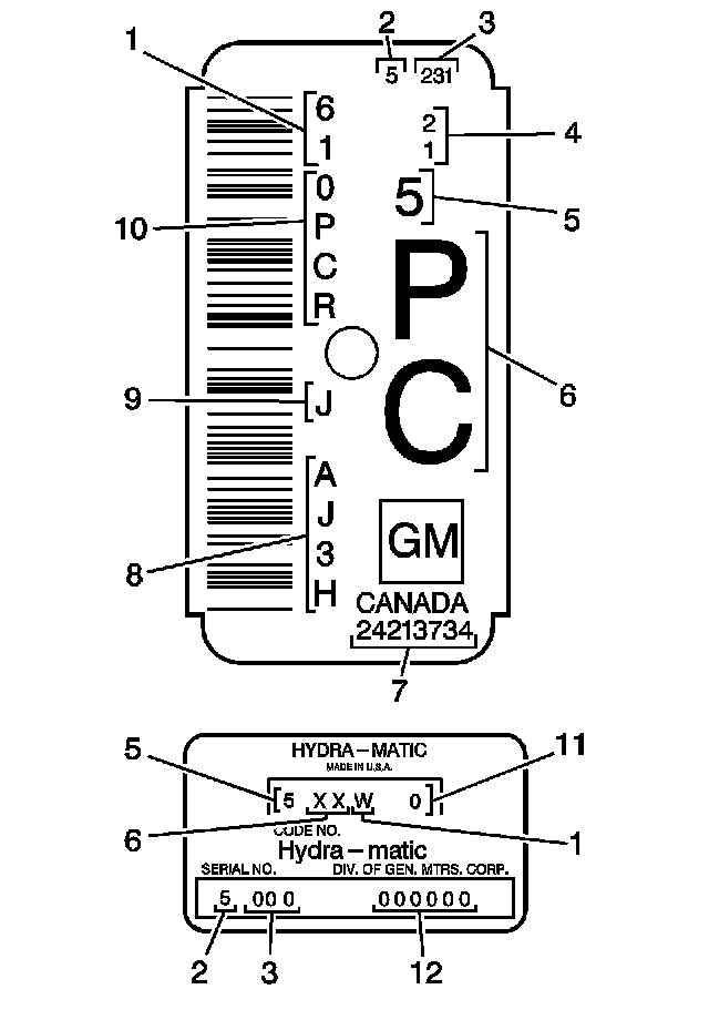 The information on the nameplate assists the technician in servicing the transmission and ordering replacement parts from a GM Parts Catalog.
