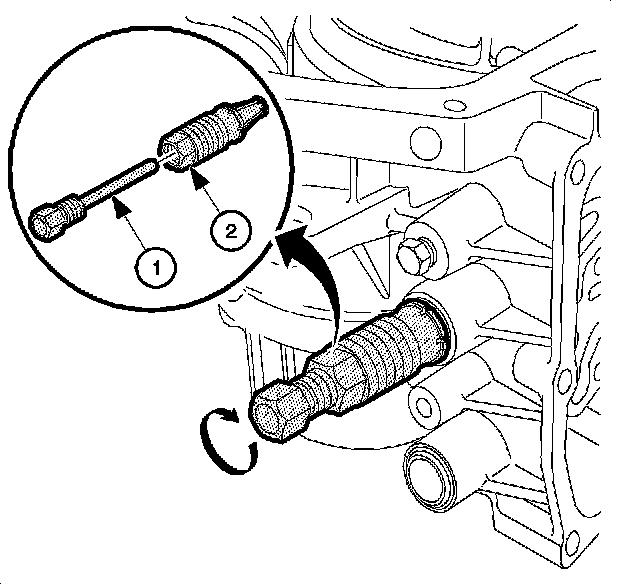 7. Insert the forcing screw piece (1) of the J 45201 into the collet (2).