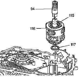 1. Remove, as one unit, the output shaft (94), the final drive assembly (116), and the final drive sun gear (115).