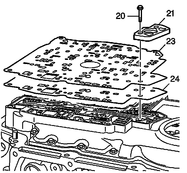 3. Install a new spacer plate to channel plate gasket (24) onto the channel plate.