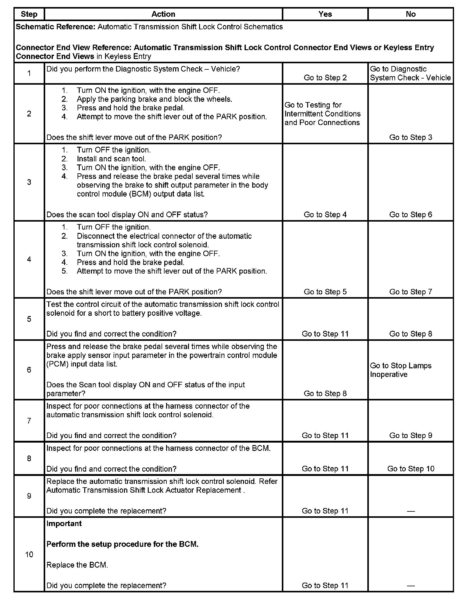 Shift Lever Does Not Move With Brake Pedal Depressed