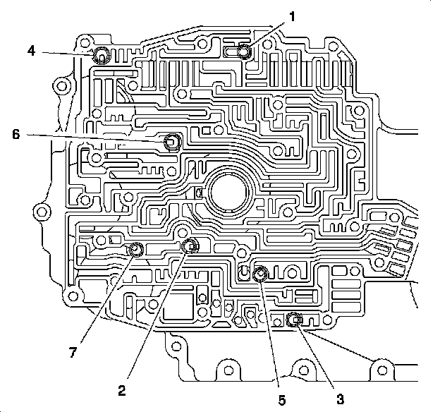 5. Remove the TFP switch assembly bolts and remove the switch assembly from the control valve body. The 7 TFP switch O-rings are reusable if not damaged and should remain with the pressure switch assembly.