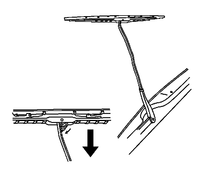 1. Install the hook of the wiper arm through the opening in the wiper blade.