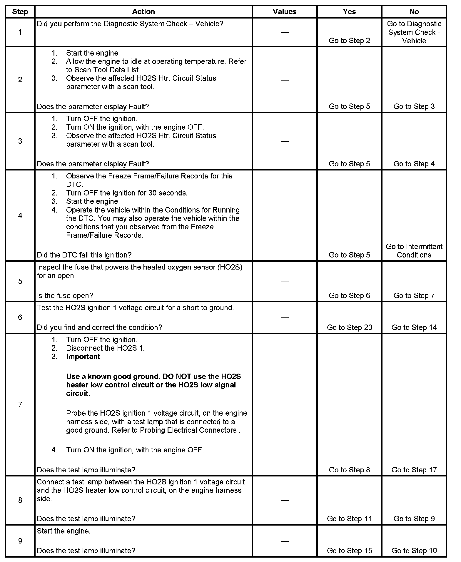 - The PCM detects that the HO2S 1 heater control circuit status is incorrect for more than 2 seconds.