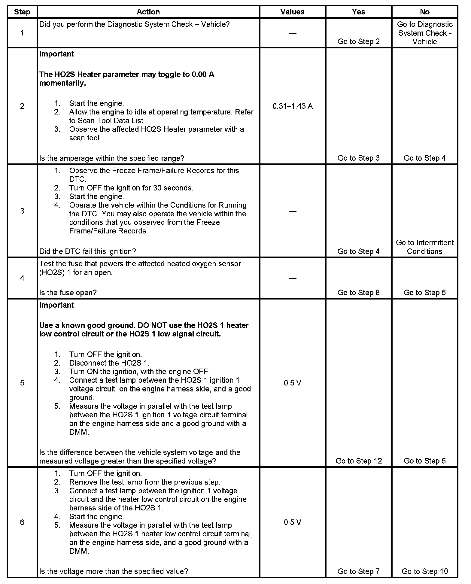 The PCM detects that the HO2S 1 heater calculated resistance is not within an expected range at engine start-up for 1 second.