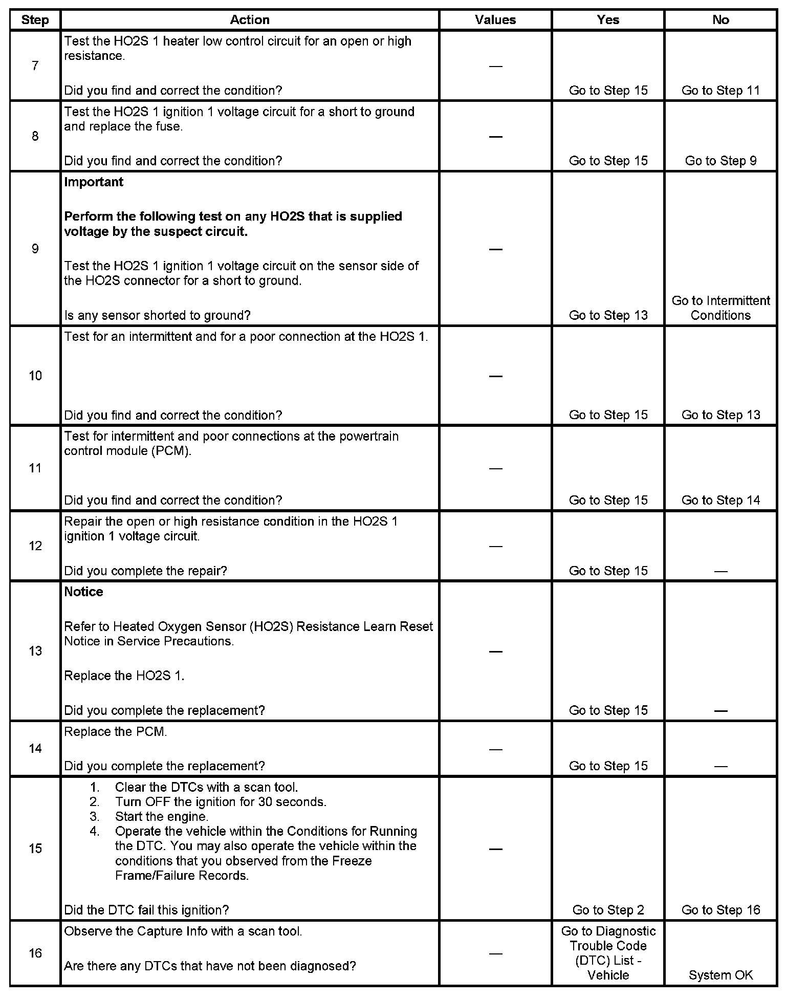 6. This step determines if high resistance is present in the HO2S 1 heater low control circuit.