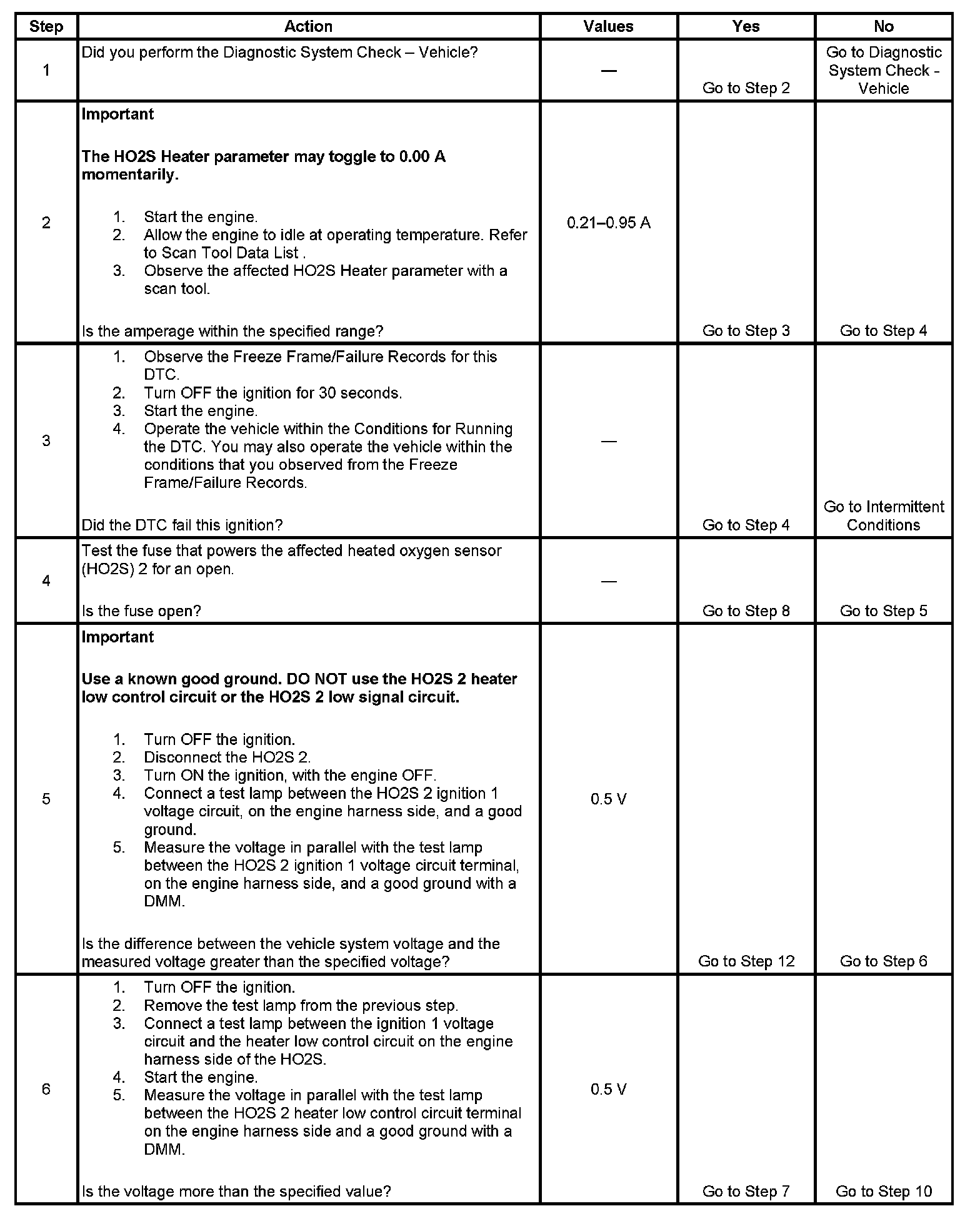 The PCM detects that the HO2S 2 heater calculated resistance is not within an expected range at engine start-up for 1 second.