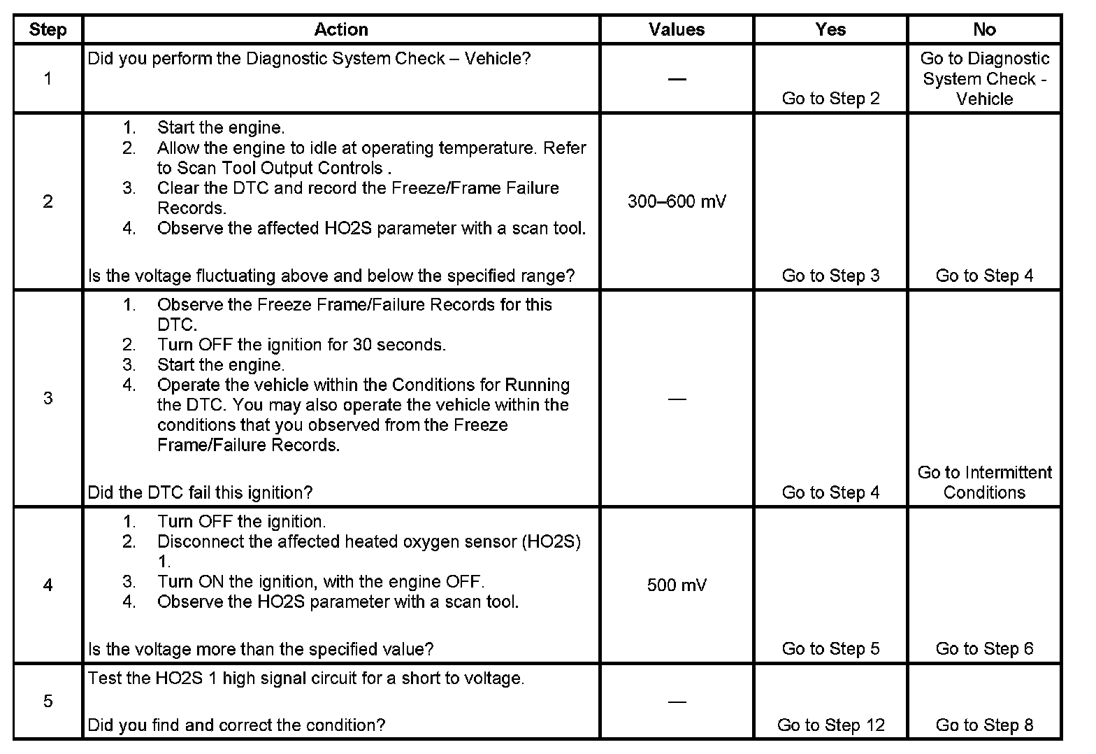 - The PCM detects that the HO2S 1 signal voltage is more than 889 mV for more than 75 seconds.