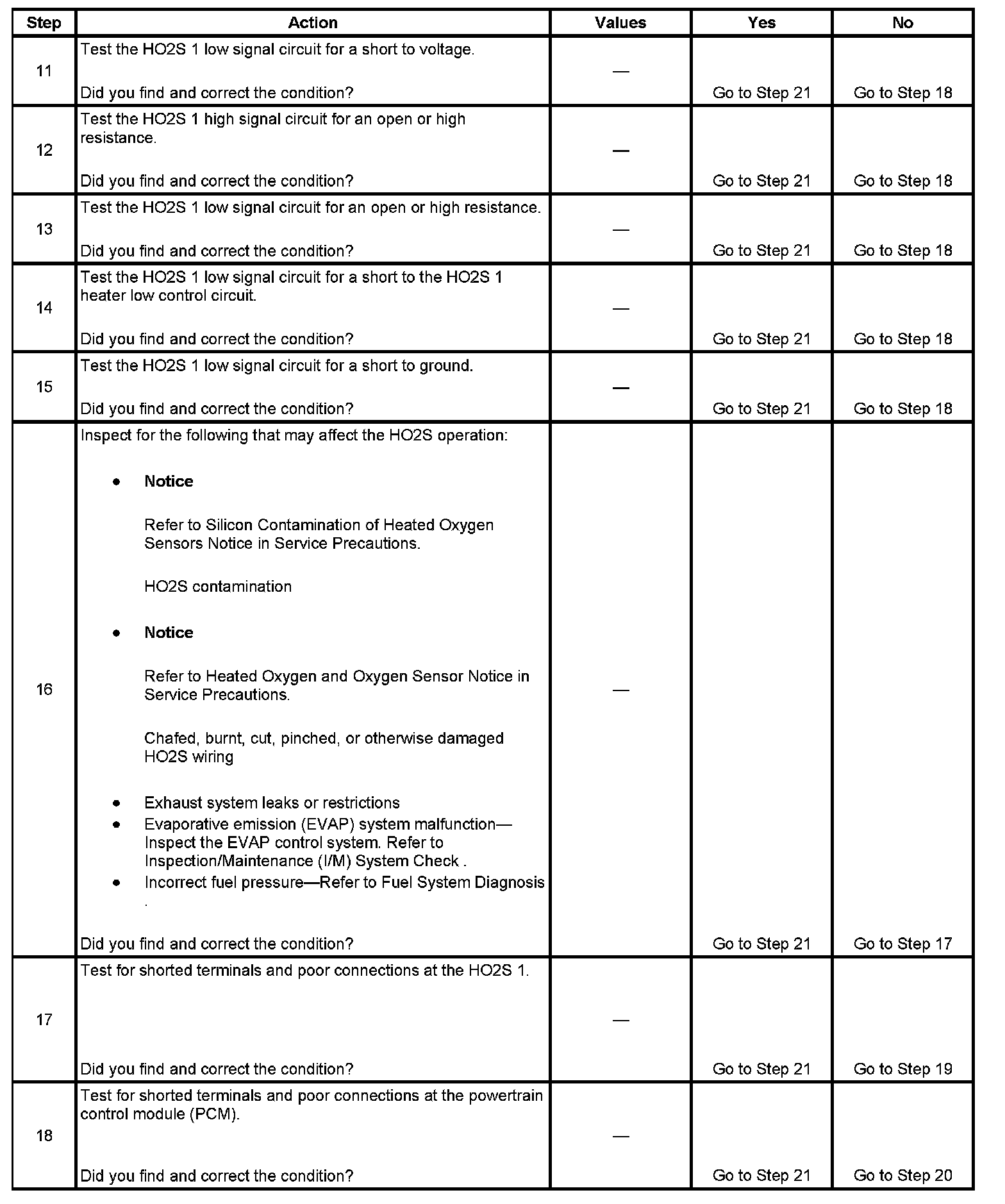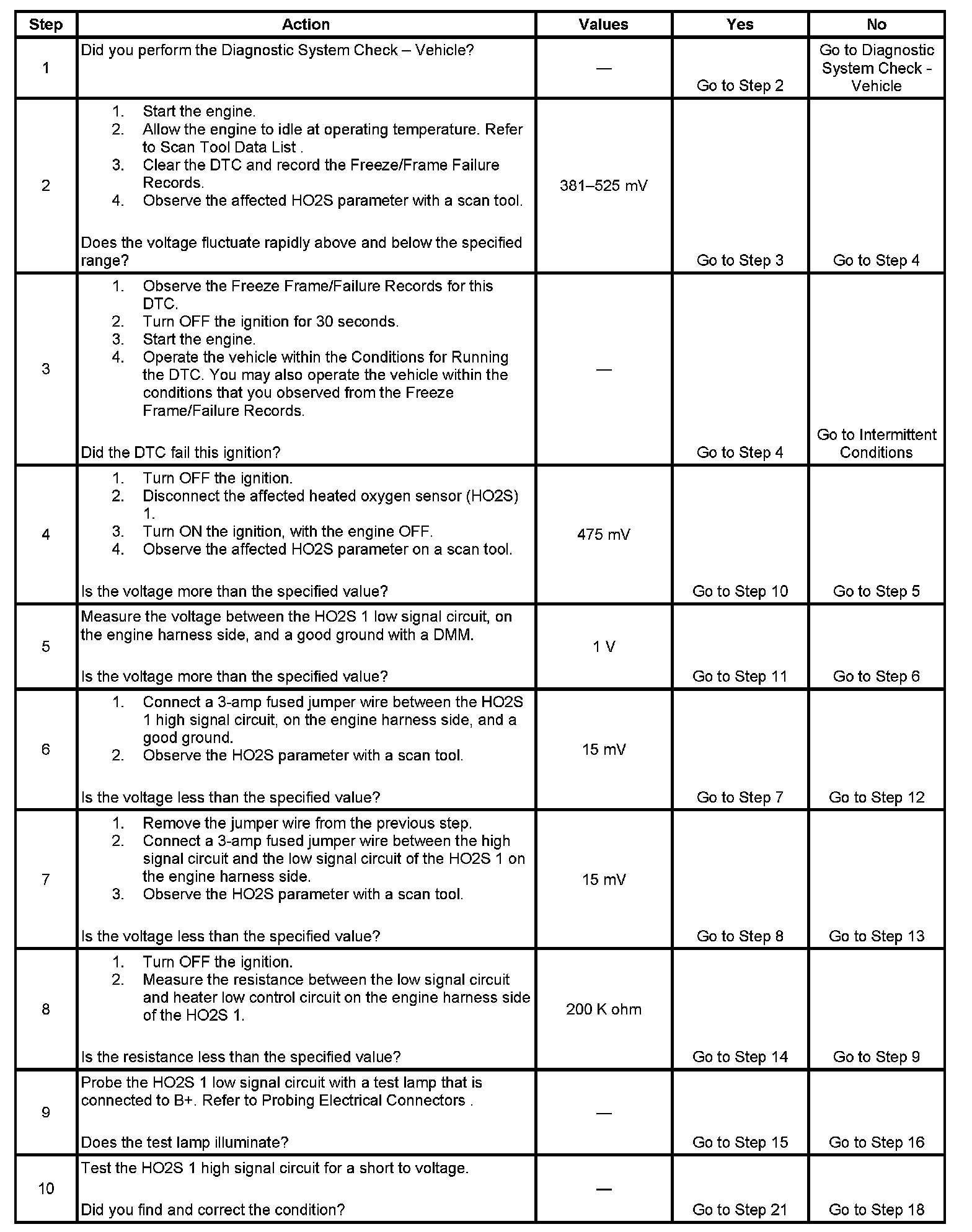 - The PCM detects that the HO2S 1 signal voltage is between 382-525 mV for more than 30 seconds.