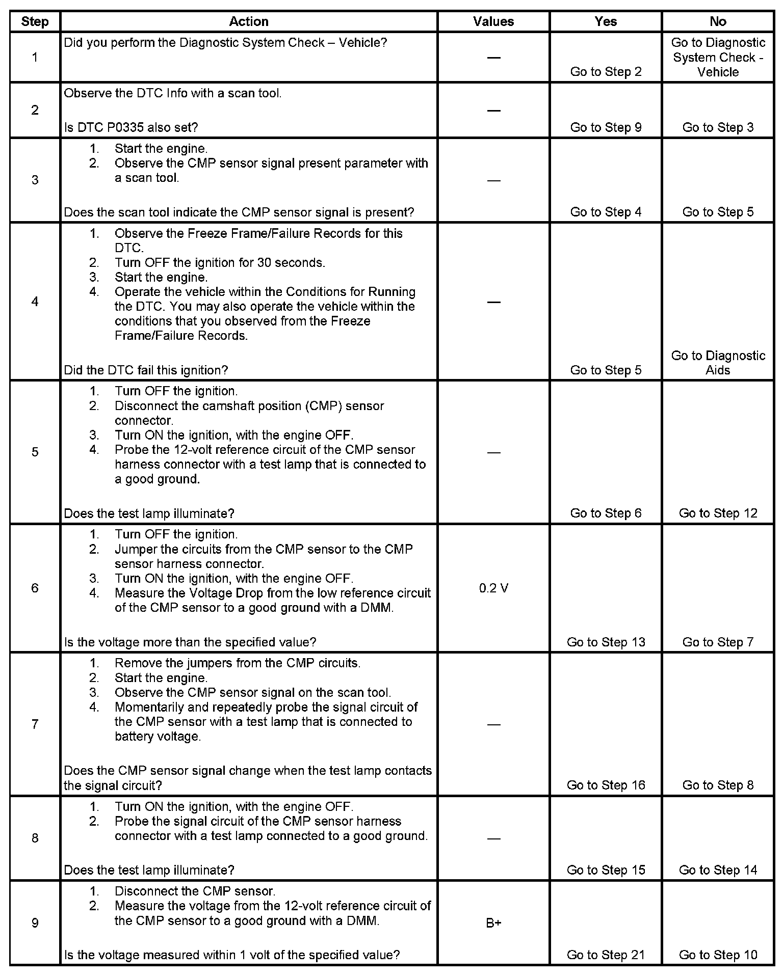 DTC P0340 Camshaft Position (CMP) Sensor Circuit