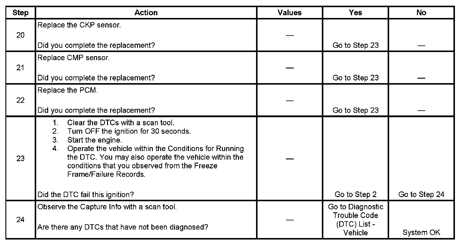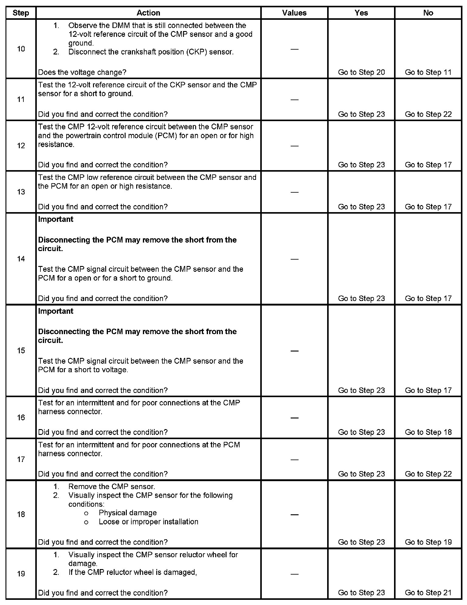 The PCM detects that the engine has been cranking for more than 10 seconds without a CMP sensor signal.