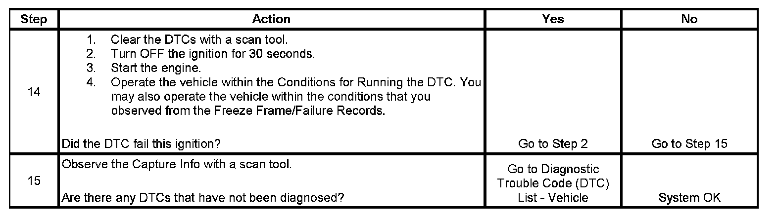 - A current DTC, Last Test Failed, clears when the diagnostic runs and passes.