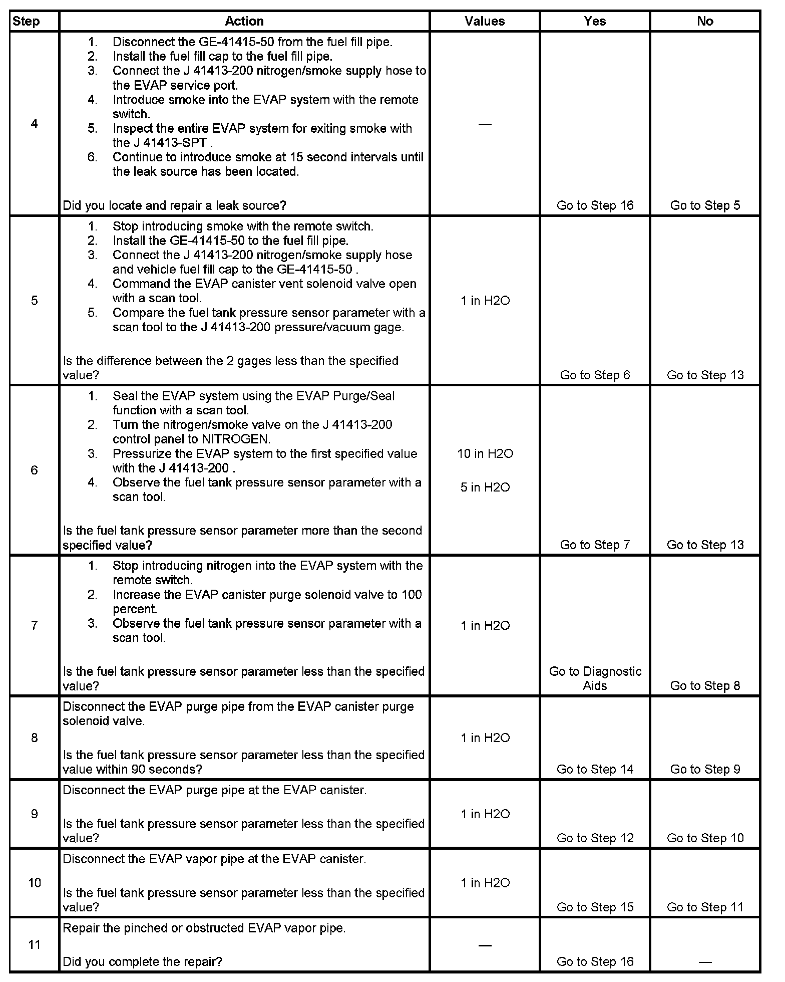 The number below refers to the step number on the diagnostic table.