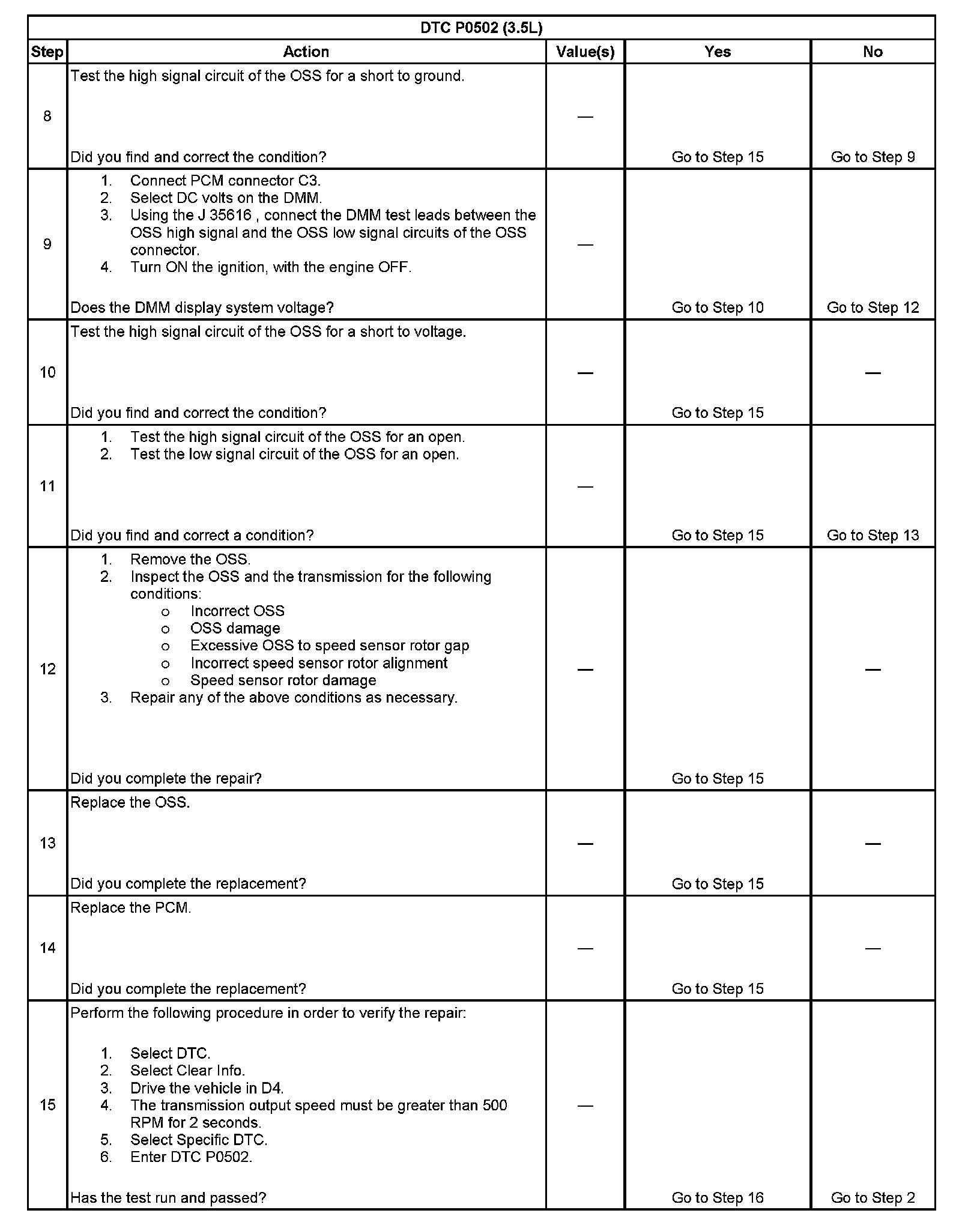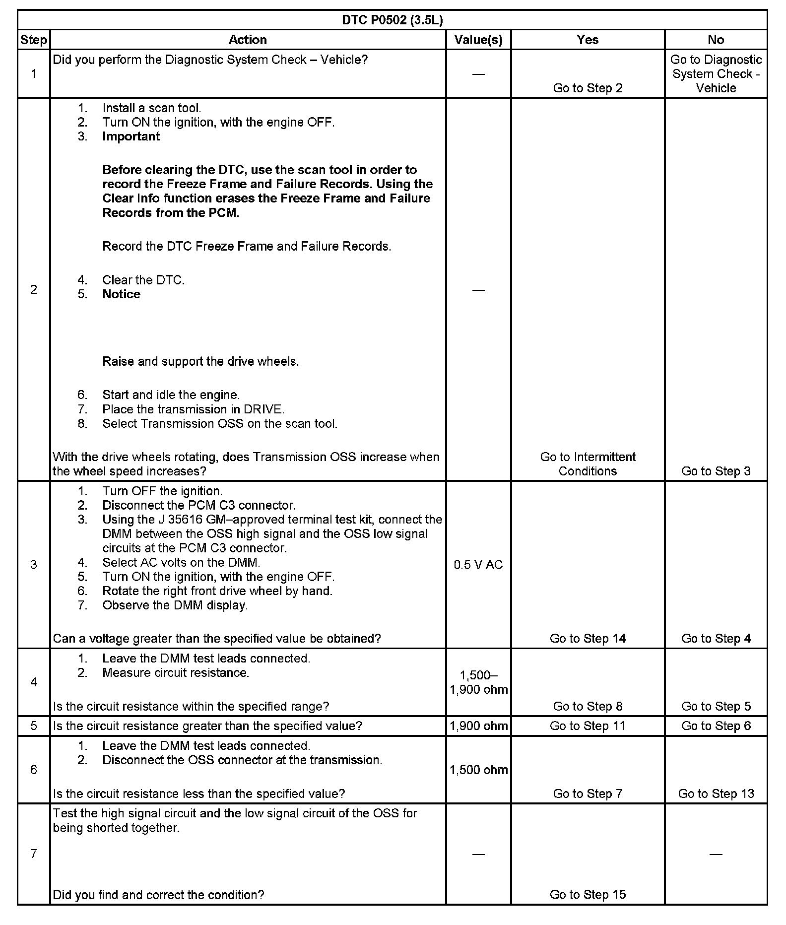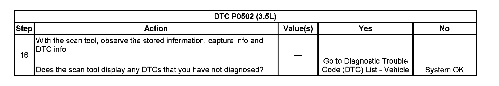 ^ The PCM stores DTC P0502 in PCM history during the second consecutive trip in which the Conditions for Setting the DTC are met.