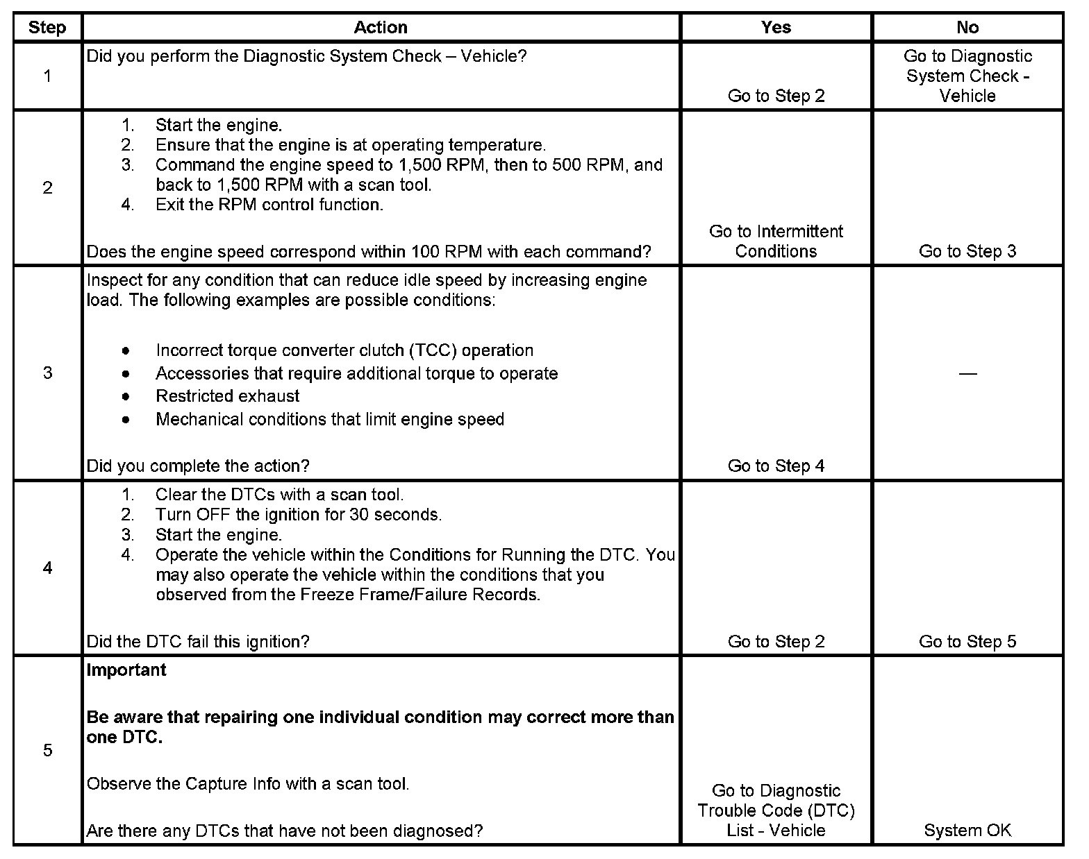 2. This test determines whether the engine can achieve the commanded RPM. If the engine does not reach the commanded RPM, the test determines whether the RPM is too high or too low.
