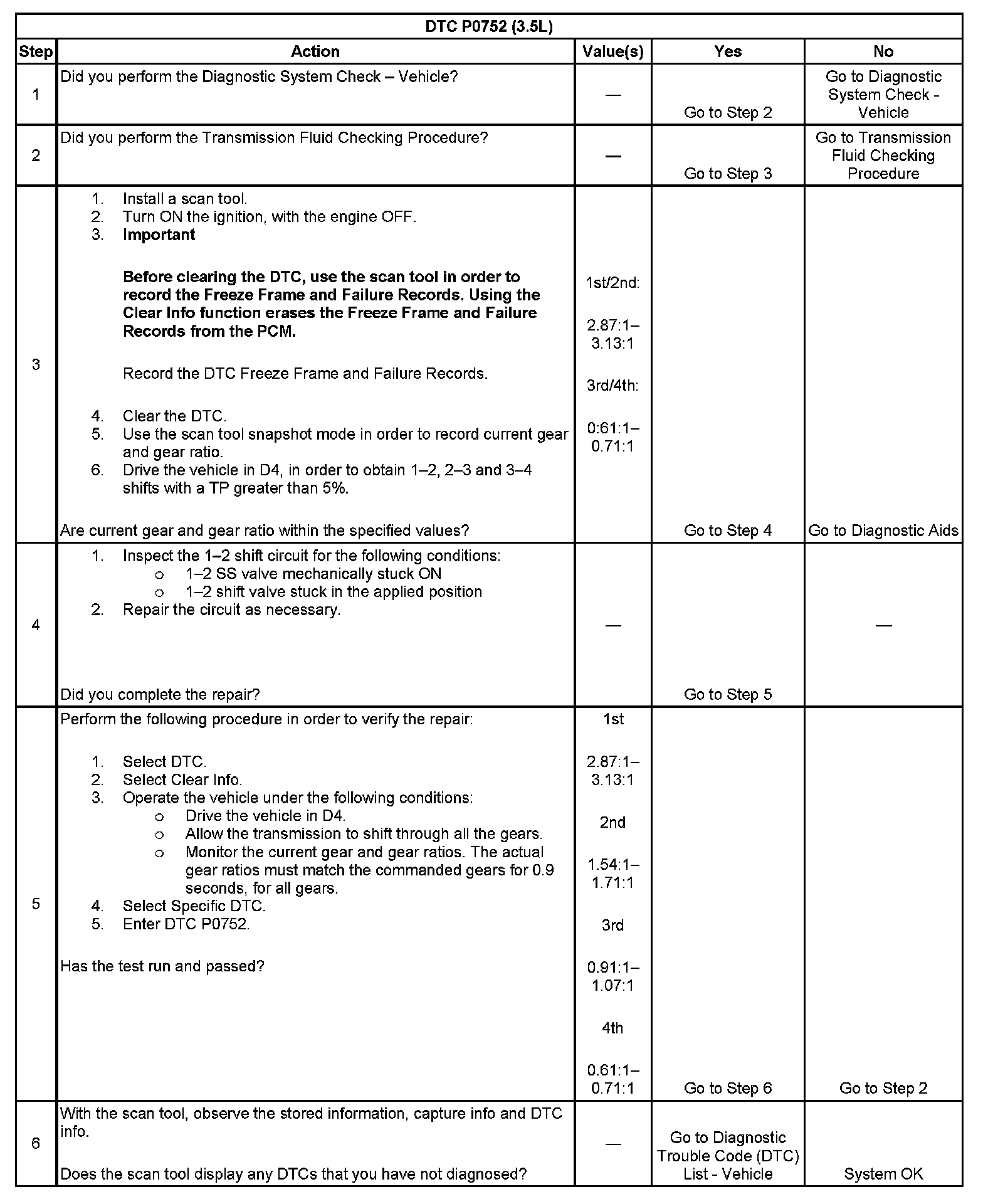 The powertrain control module (PCM) monitors the actual gear ratio, and compares the actual gear ratio with the commanded gear ratio. DTC P0752 sets under two conditions: