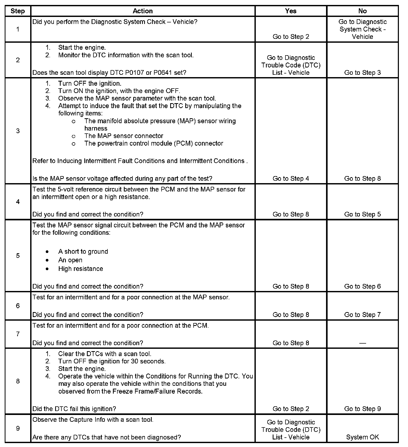 DTC P1107 Manifold Absolute Pressure (MAP) Sensor Circuit Intermittent Low Voltage