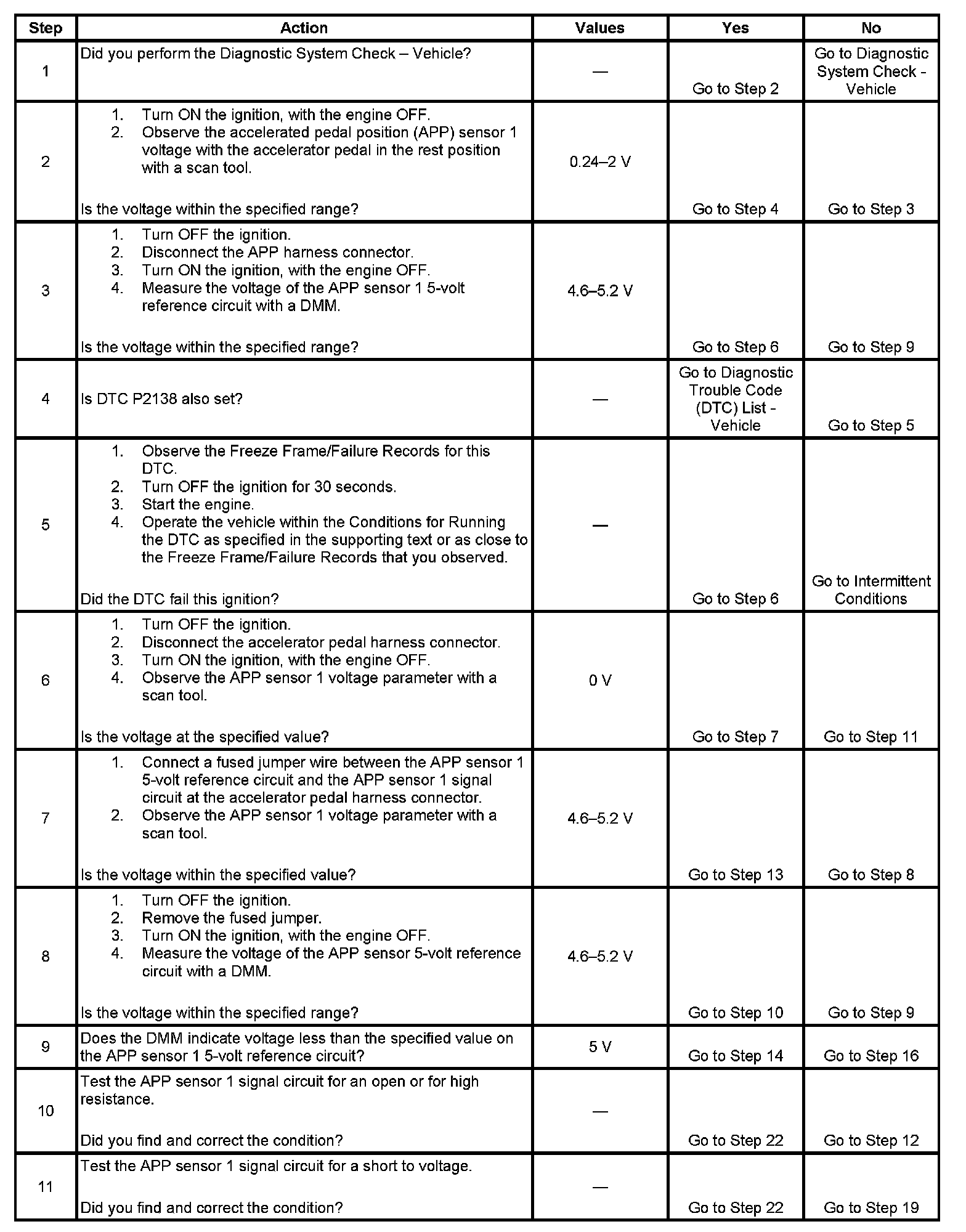 DTC P2120 Accelerator Pedal Position (APP) Sensor 1 Circuit