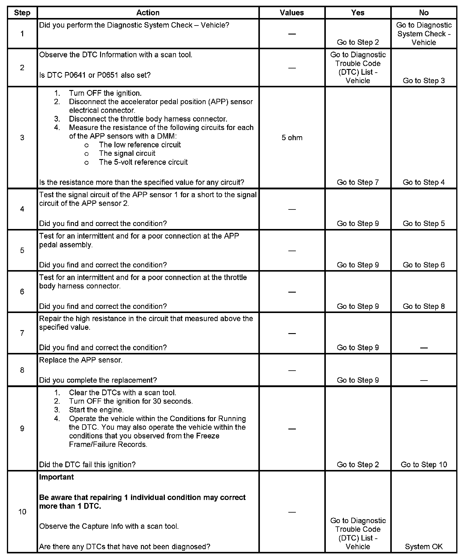 The control module provides the APP sensors a 5-volt reference circuit and a low reference circuit. The APP sensors then provide the control module signal voltages proportional to pedal movement. The APP sensor 1 and the APP sensor 2 signal voltages are both low at rest and increase as the pedal is depressed. When the control module detects that the APP sensor 1 and the APP sensor 2 signal circuits are out of correlation, DTC P2138 sets.