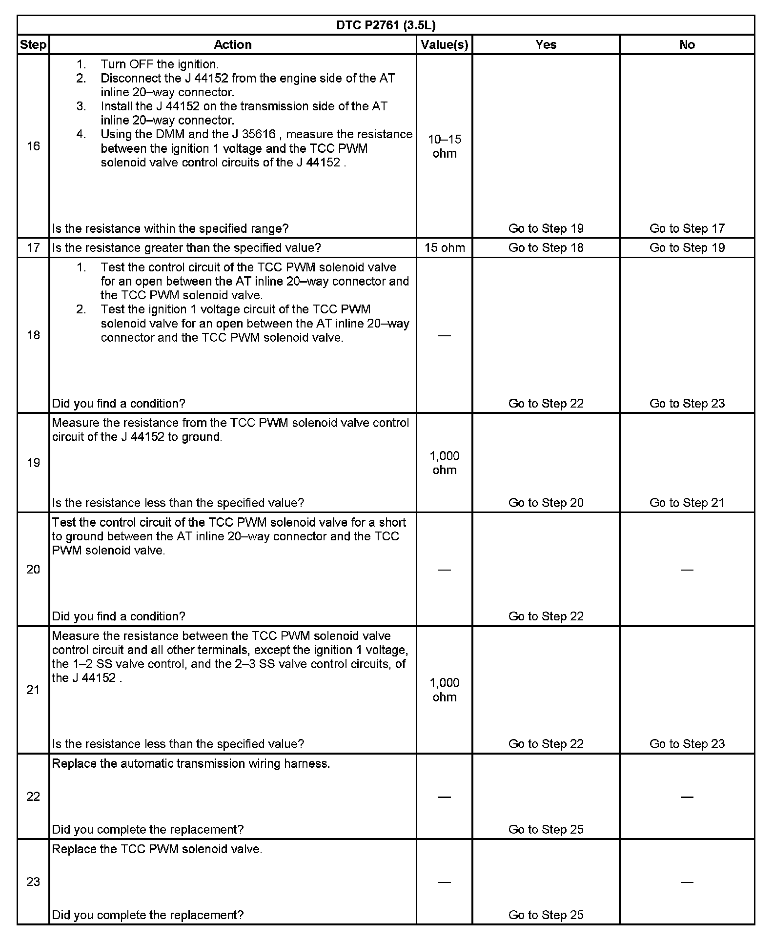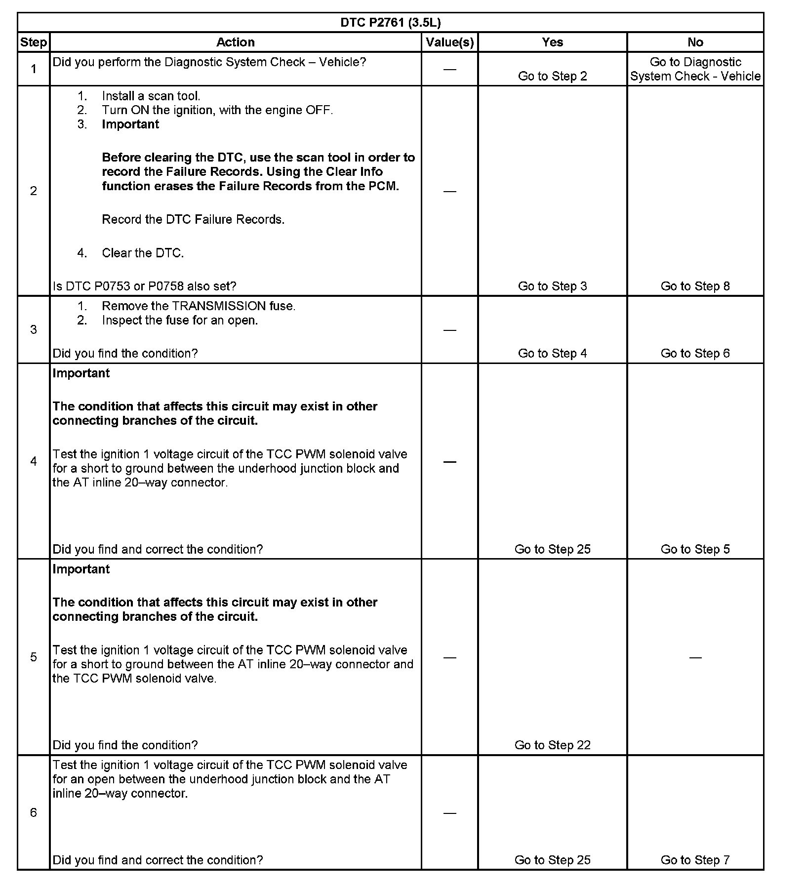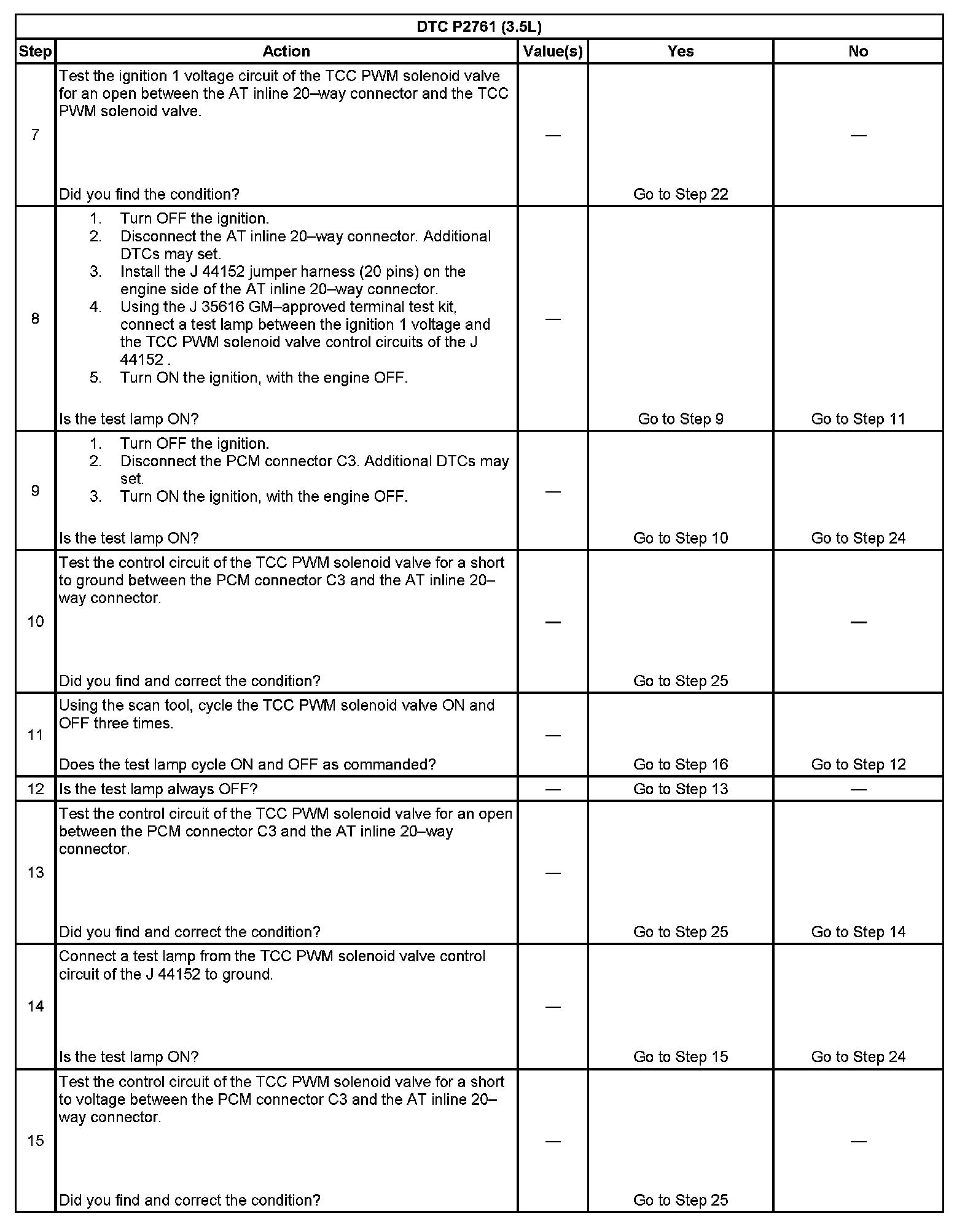 When the PCM detects a continuous open, short to ground or short to voltage in the TCC PWM solenoid valve circuit, then DTC P2761 sets. DTC P2761 is a type A DTC.