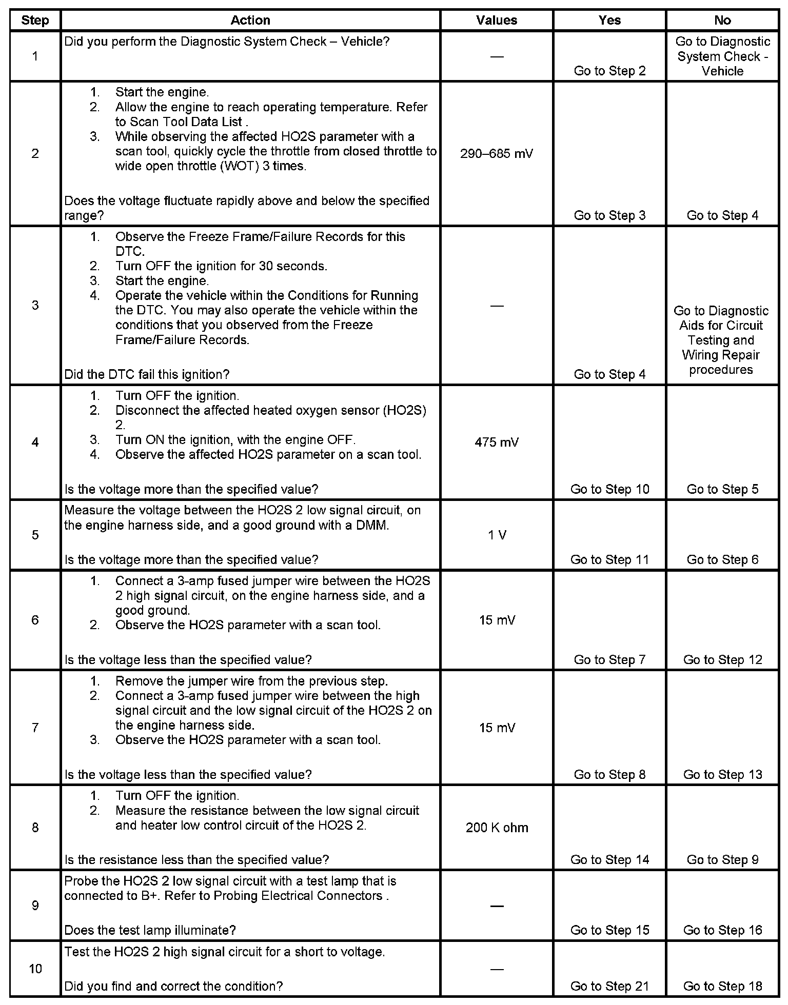 - The PCM detects that the HO2S 2 voltage is less than 685 mV for 11.4 seconds.
