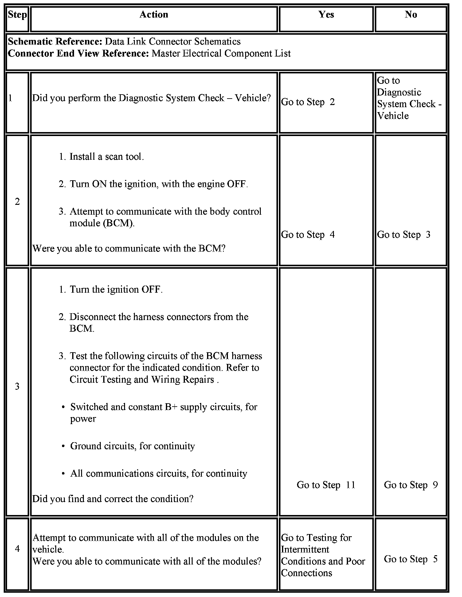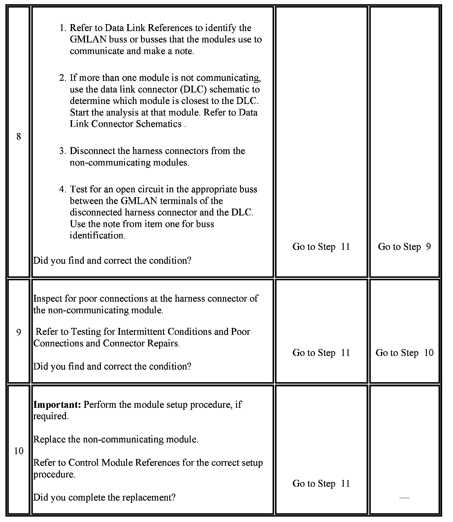 8. This step identifies which of the GMLAN busses the module or modules use for communication. Use the Data Link References for identifying the correct buss to analyze.