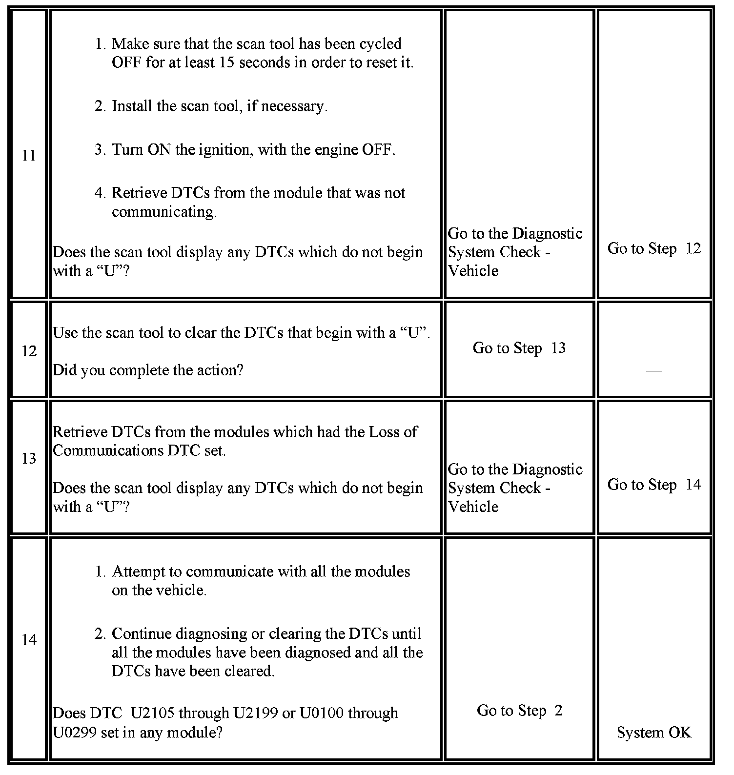 14. The modules which can communicate indicate the module which cannot communicate. You must clear the DTC from these modules to avoid future misdiagnosis.