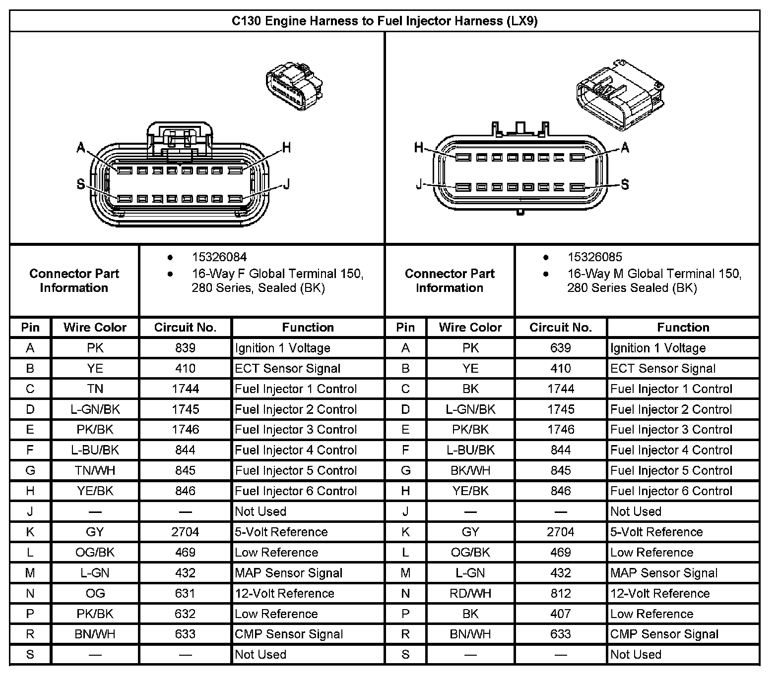 C130 Engine Harness to Fuel Injector Harness: