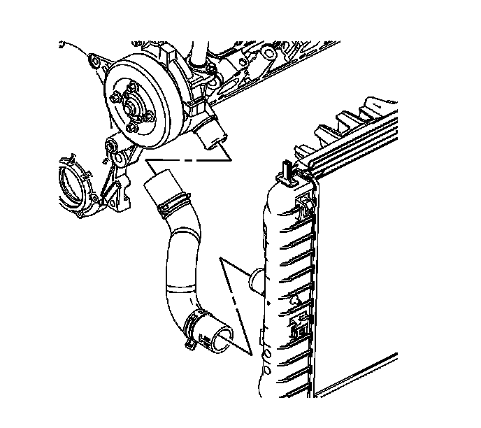 17. Reposition the radiator outlet hose clamp at the radiator using the J 38185.