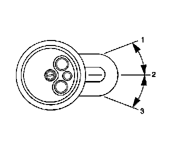 2. Install the engine coolant heater. Position the engine coolant heater element at the 3 o'clock position (2), as shown.Final installed position between 2 o'clock (1) and 4 o'clock (3) is acceptable.