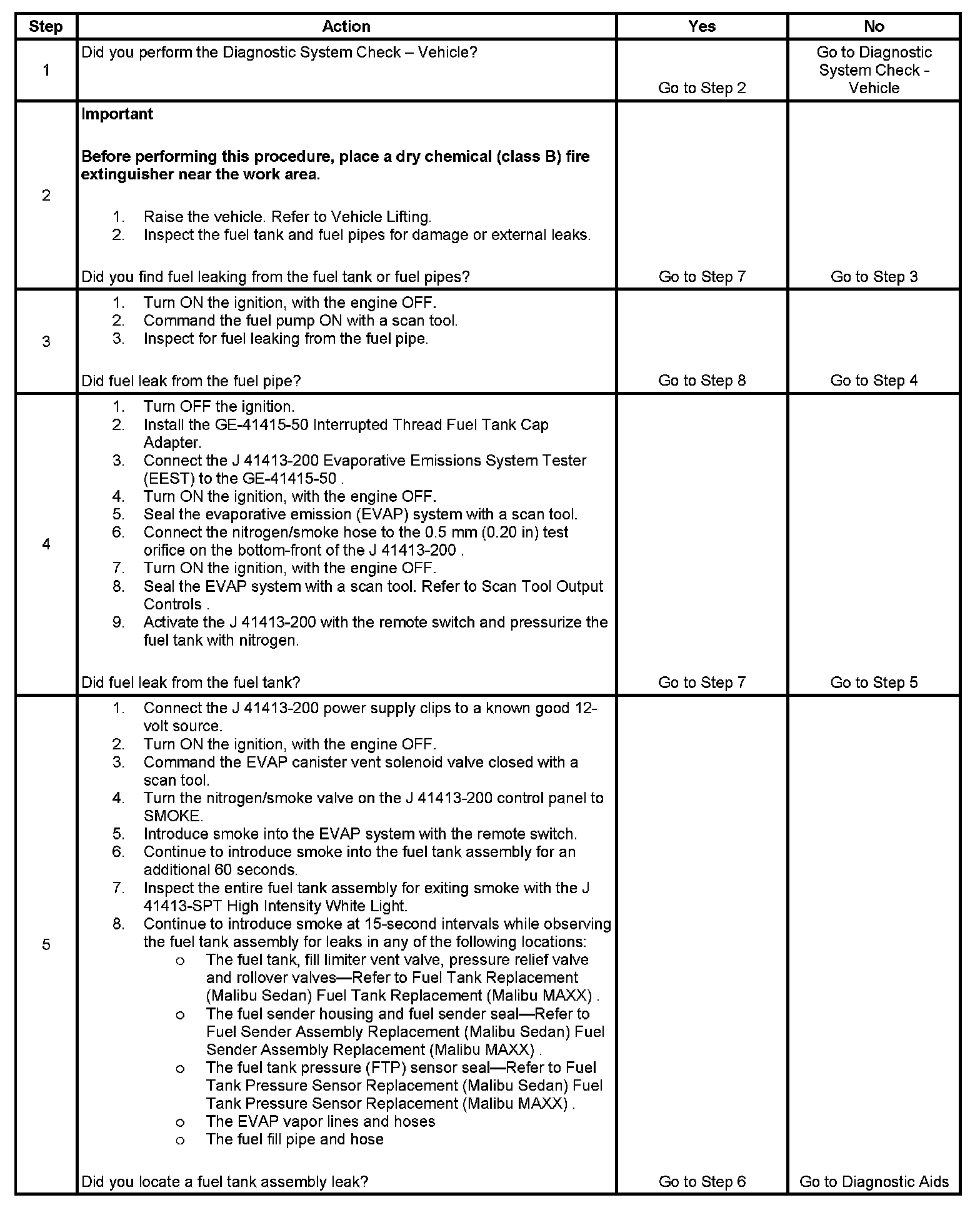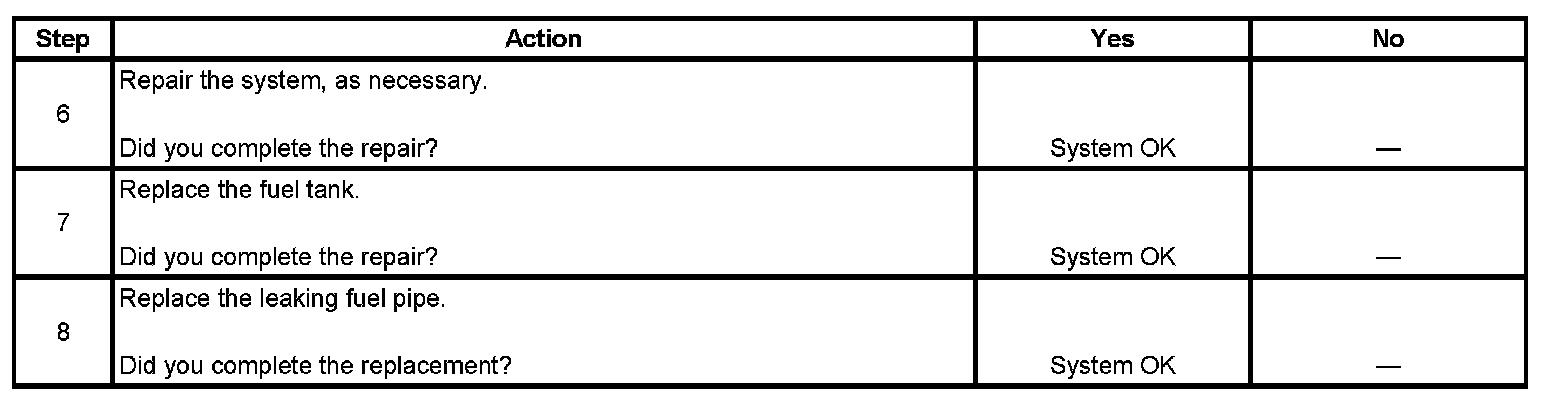 4. This step tests for fuel leaks below the fuel tank fuel level.