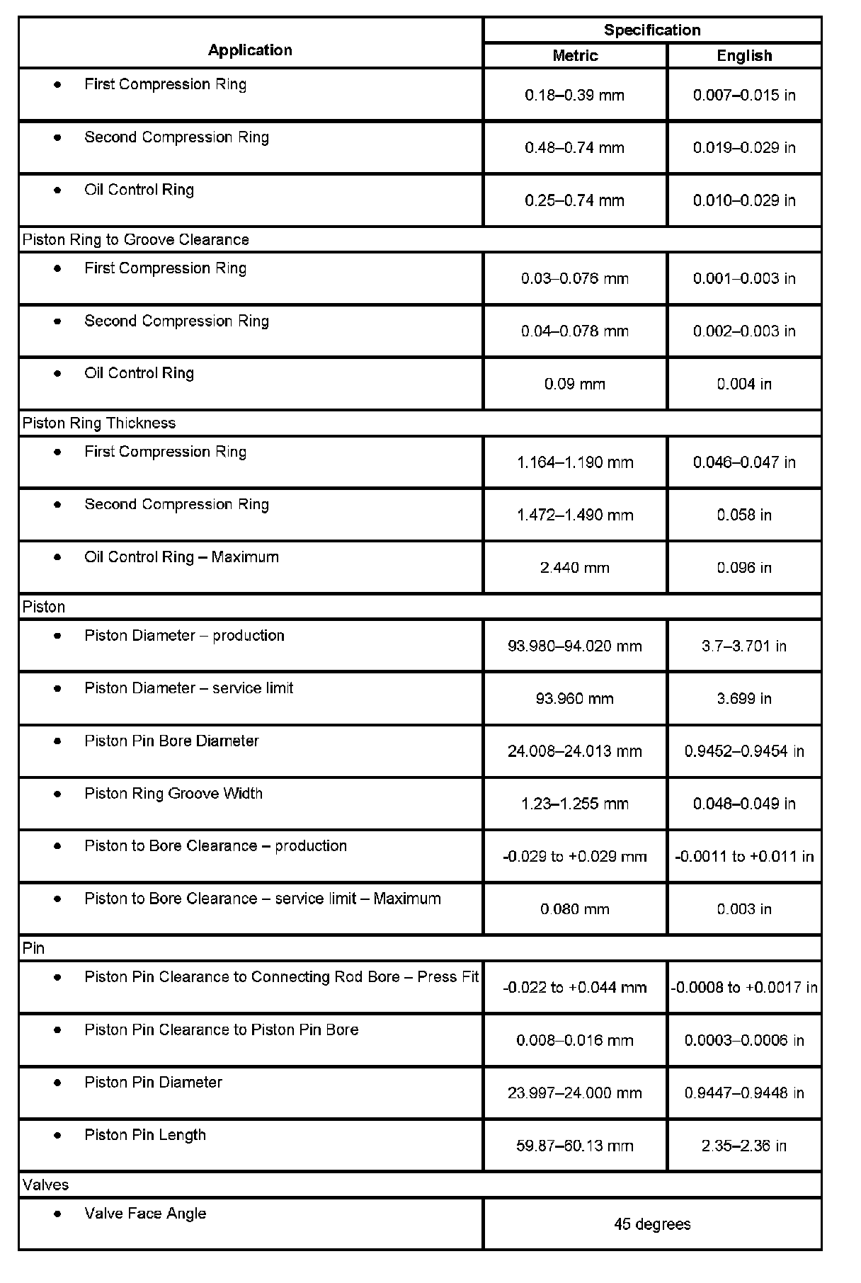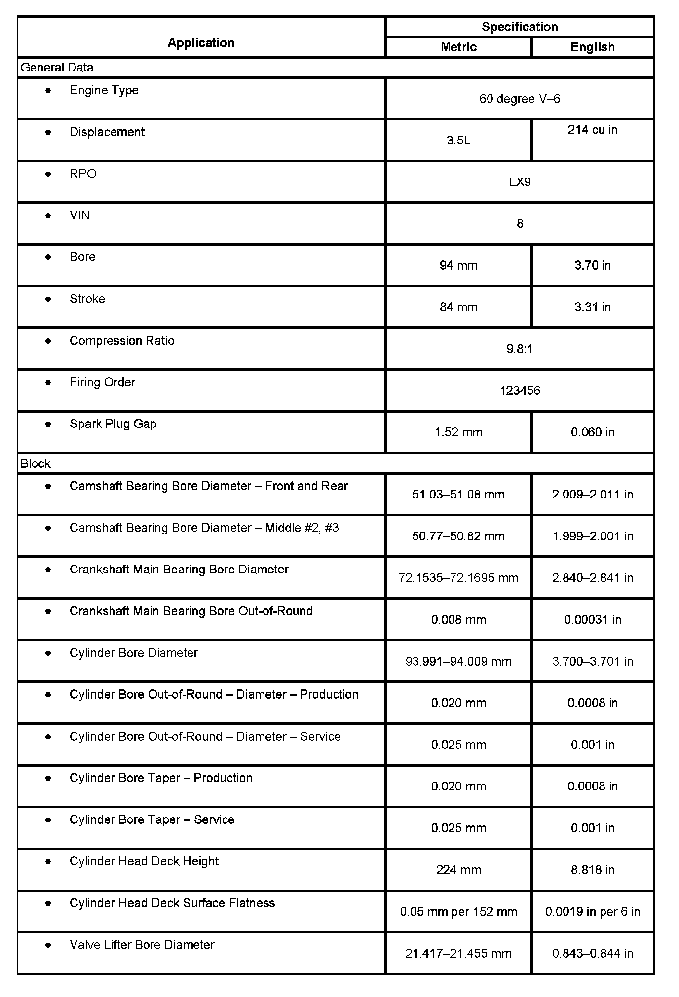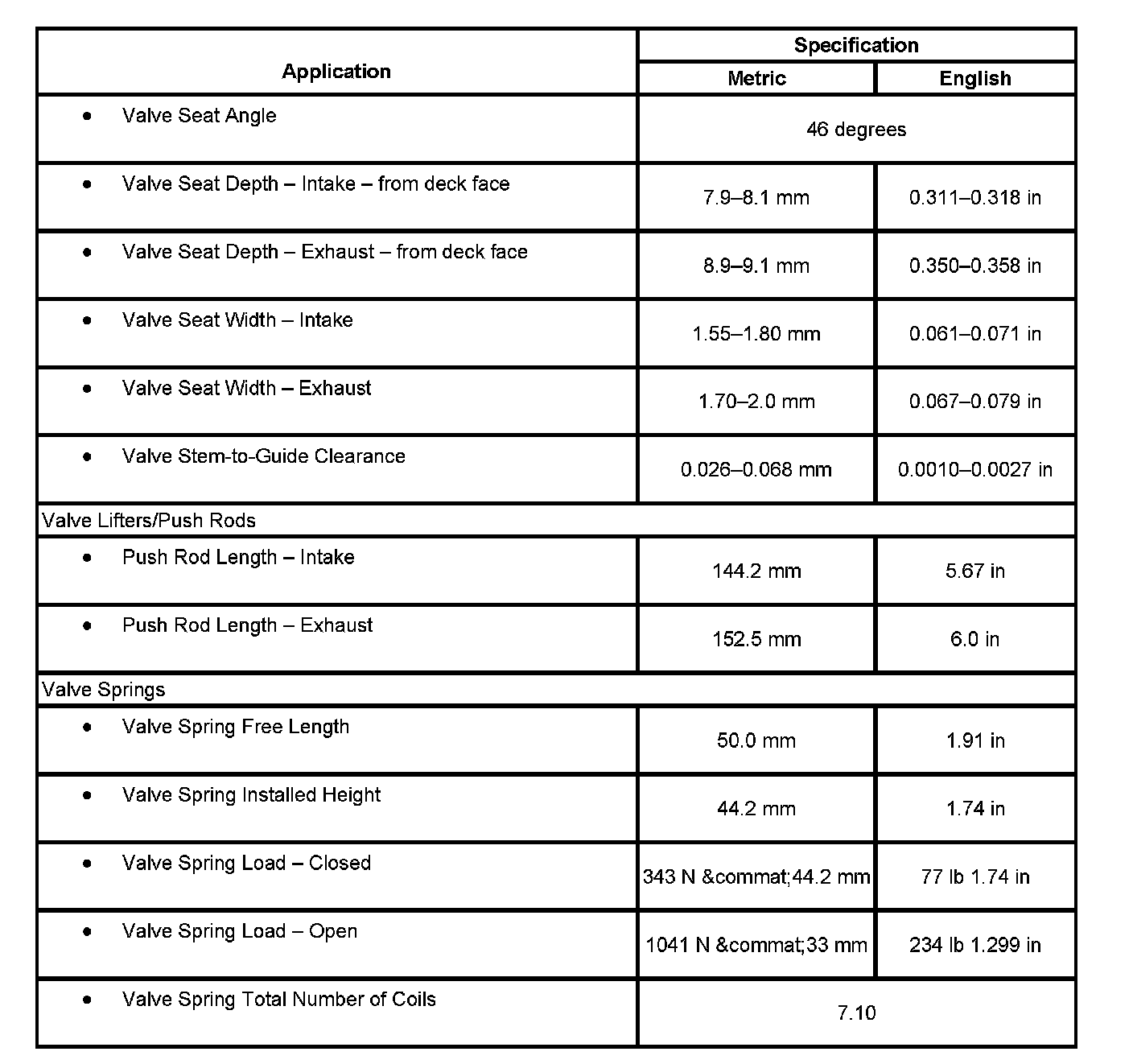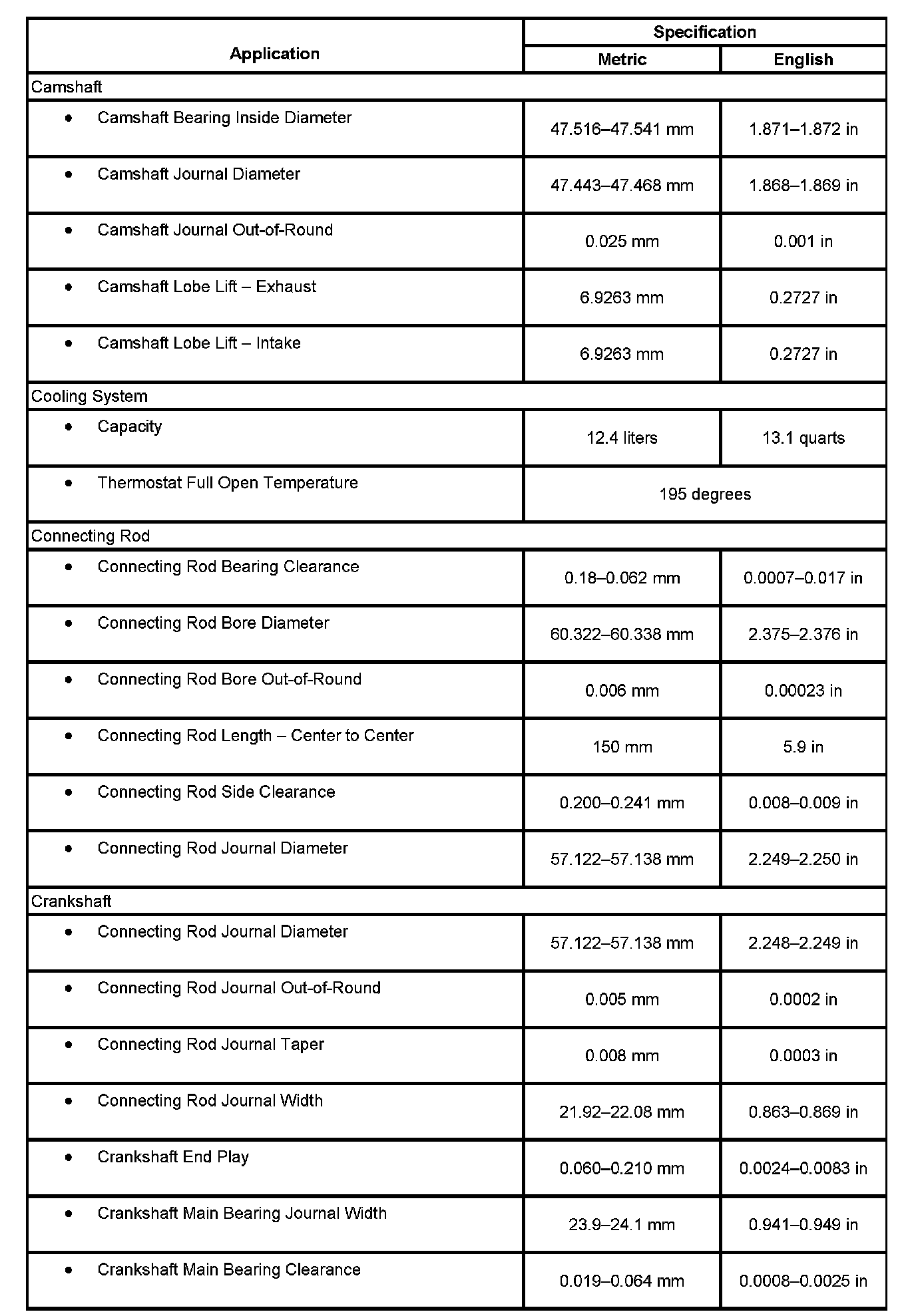 Engine Mechanical Specifications
