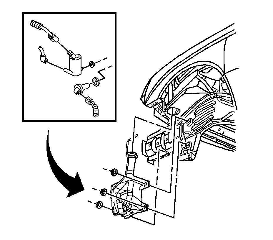 2. Position the washer solvent container to the left frame rail.