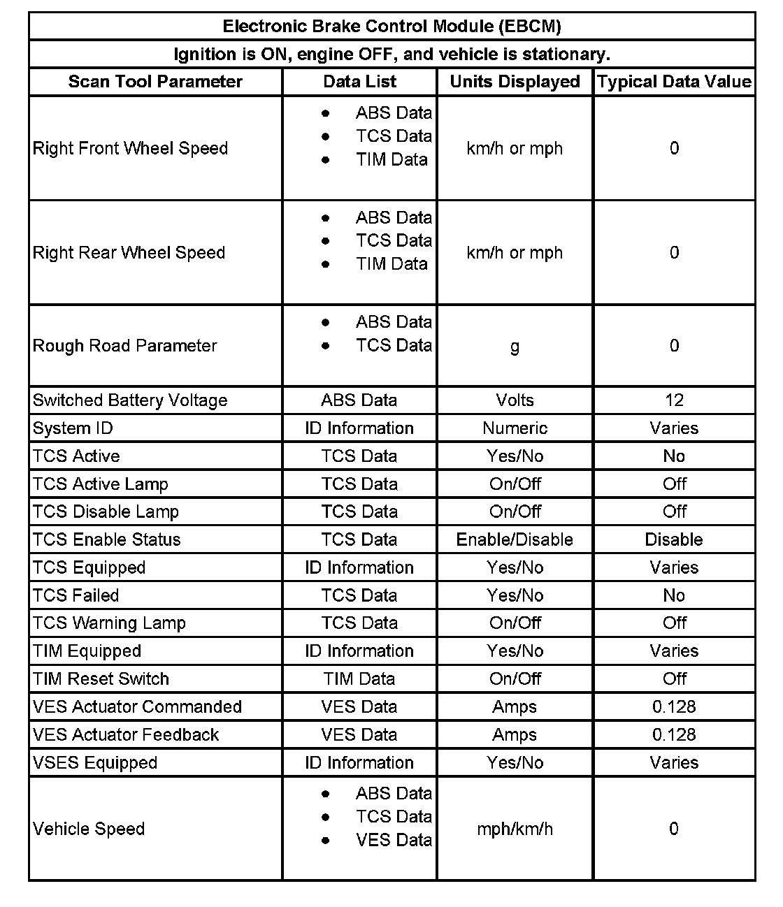 Scan Tool Data List