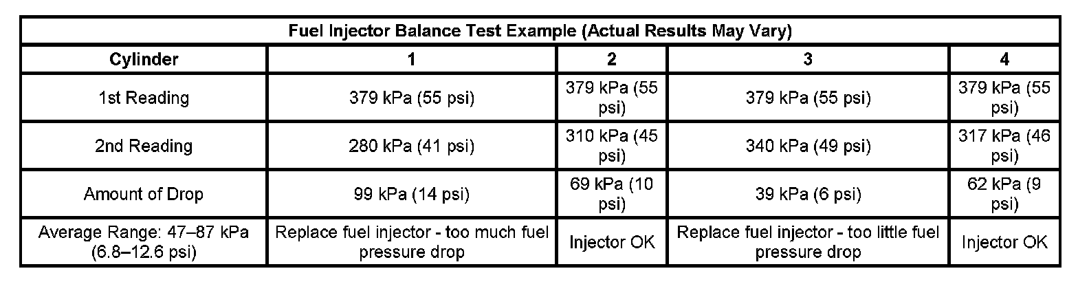 Fuel Injector Balance Test Example (Actual Results May Vary):