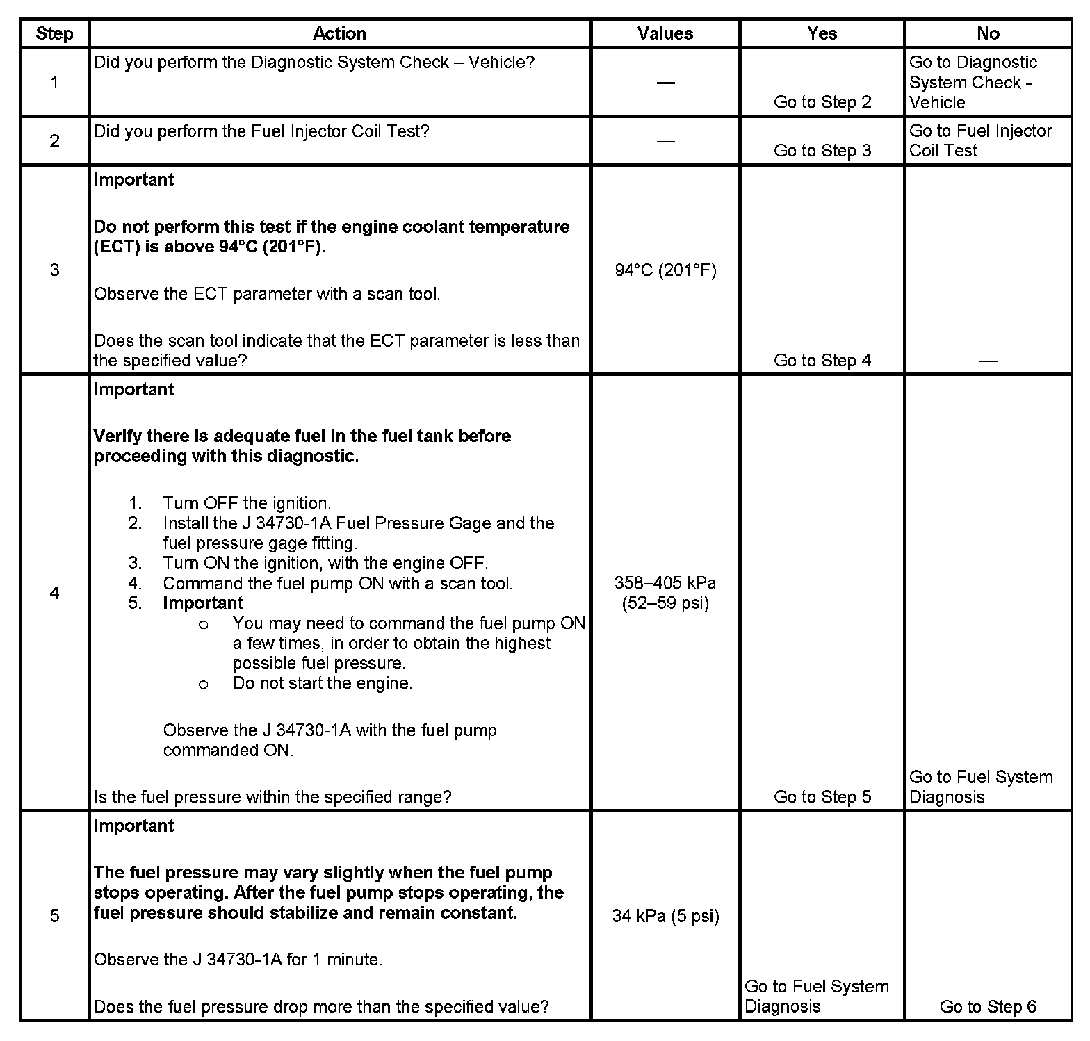 3. The engine coolant temperature (ECT) must be below the operating temperature in order to avoid irregular fuel pressure readings due to hot soak fuel boiling.