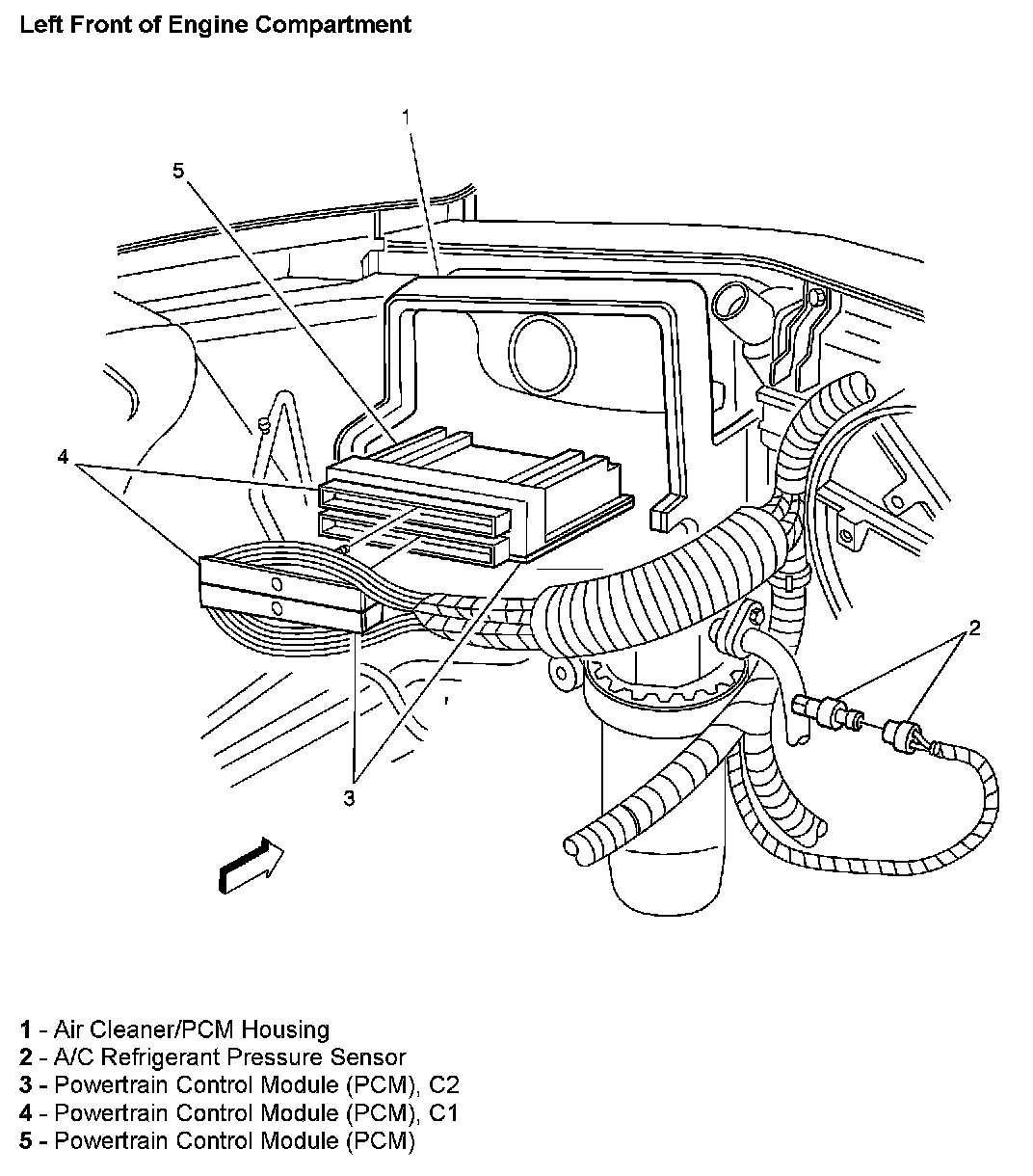 Left Front Of Engine Compartment: