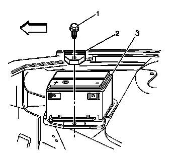 4. Remove the battery hold down retainer bolt (1).