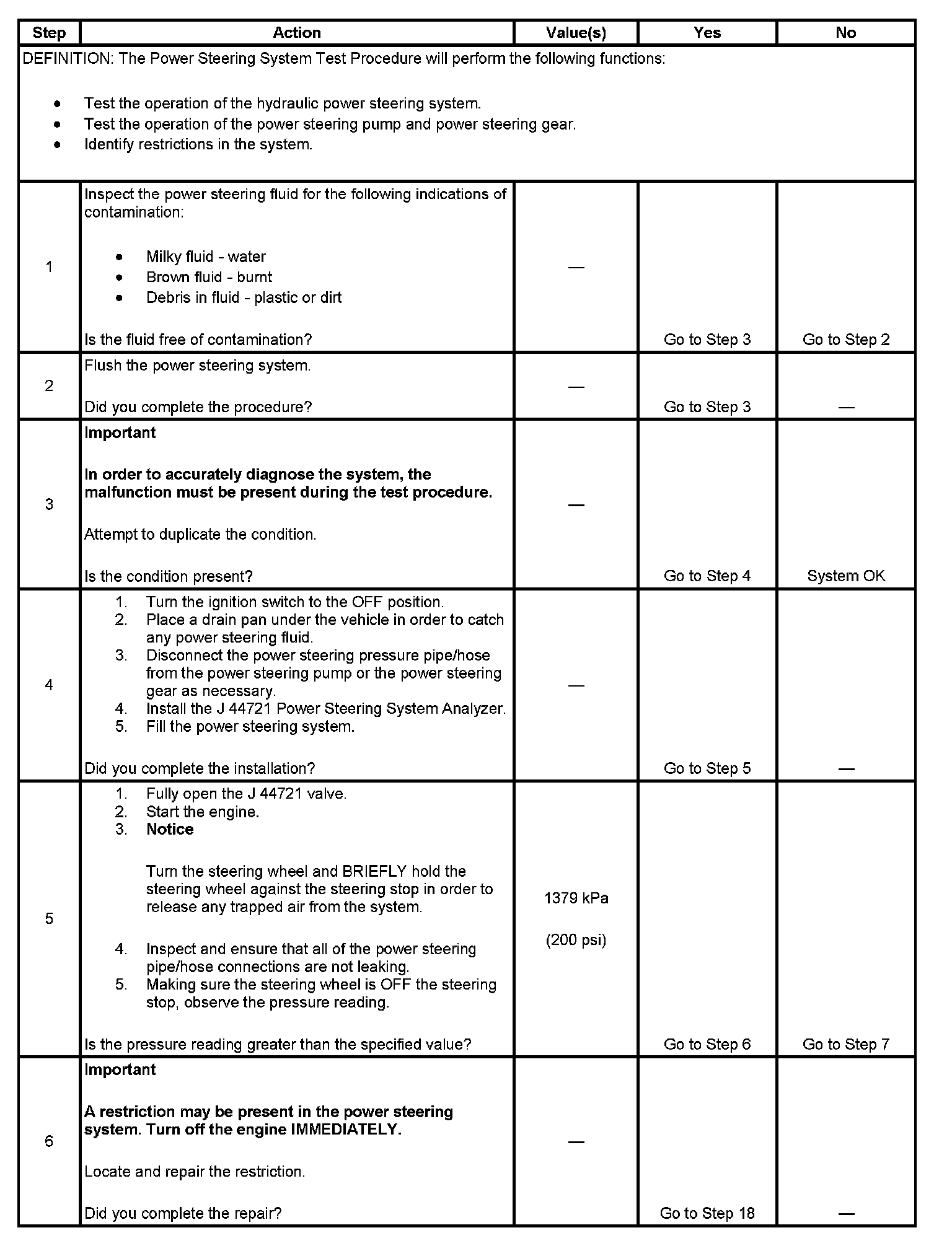 Power Steering System Test Procedure
