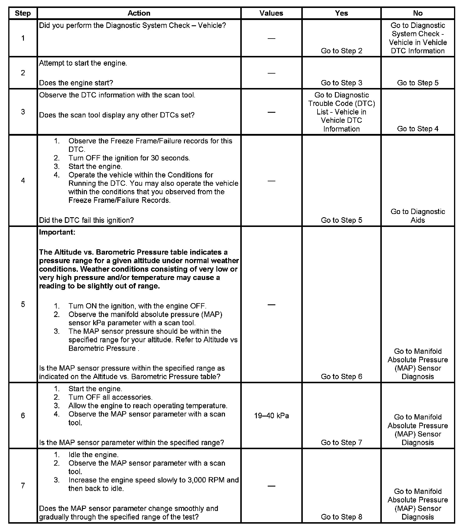5. This step will determine if the MAP sensor pressure is within the proper range for a given altitude.