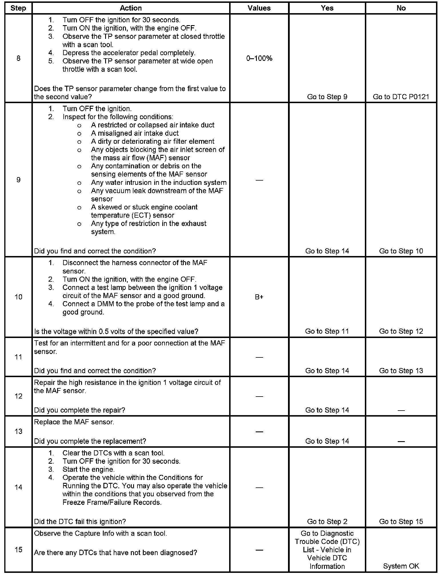 - The change in the TP Sensor parameter is less than 15 percent.