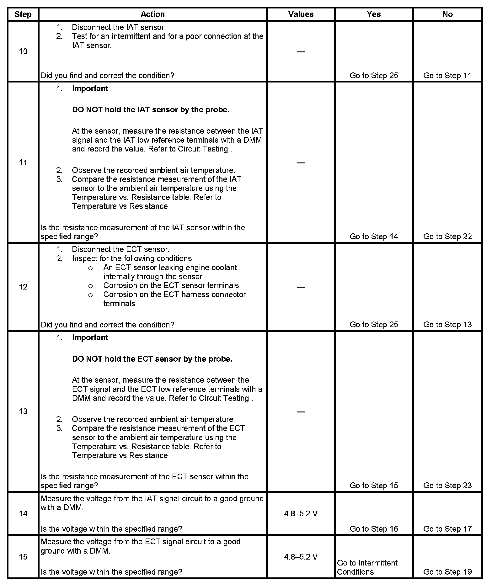 - The time spent cranking the engine without starting is more than 5 seconds, with a temperature difference between the ECT sensor and the IAT sensor of more than 15°C (27°F).OR