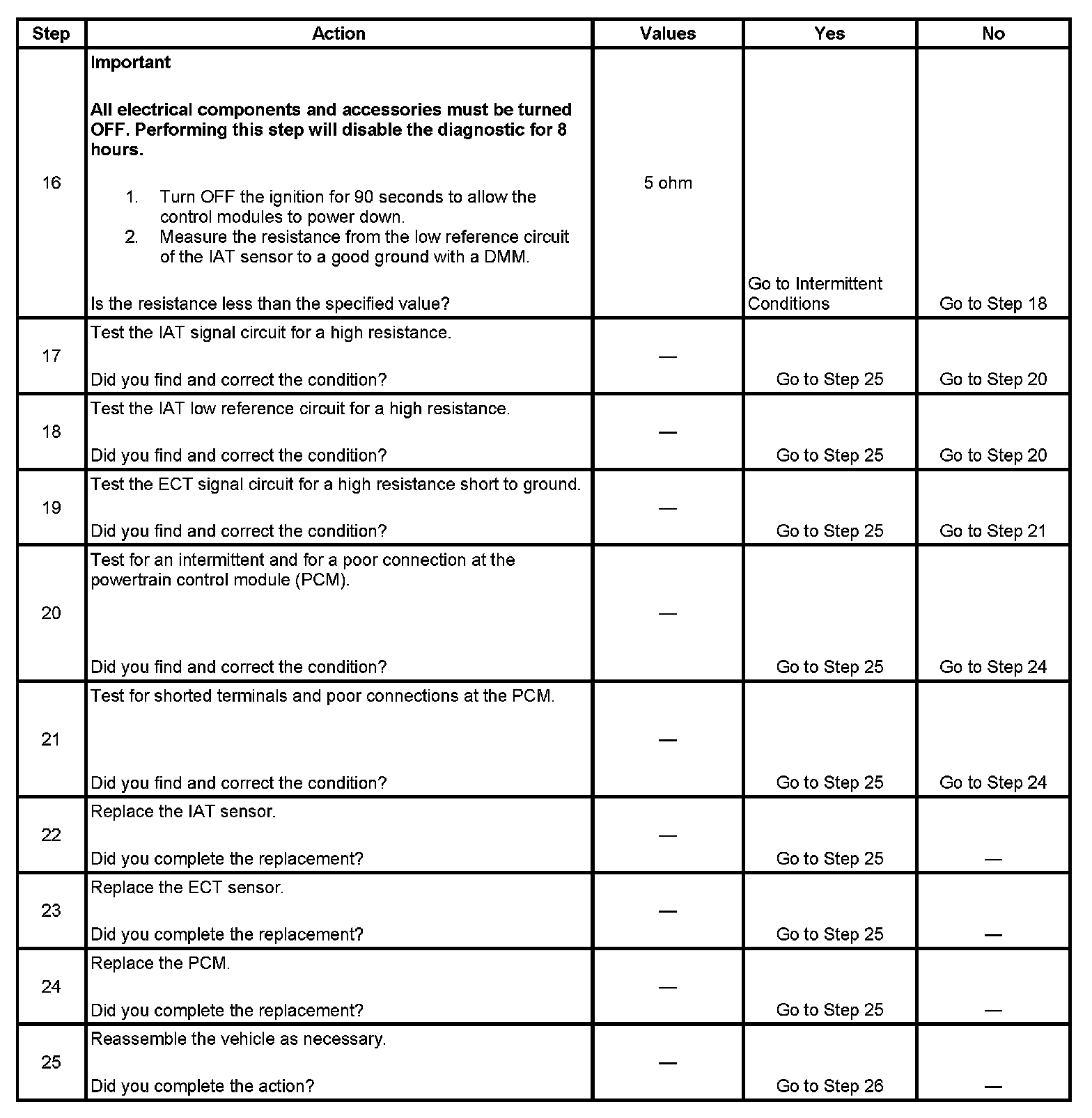 - The PCM detects a temperature difference between the ECT sensor of more than 15°C (27°F), then the vehicle must be driven for 5 minutes over 40 km/h (25 mph). If the IAT sensor temperature decreases more than 5°C (9°F), a block heater is detected and the test is aborted. If the IAT sensor temperature does not decrease, a block heater was not detected and DTC P0116 sets.